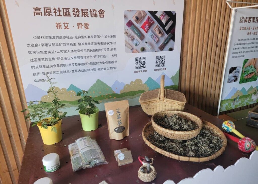 活動現場集結桃園農村社區各式風味產品,包含高原社區香艾工作坊艾草系列產品、大北坑社區文新製茶茶葉…等;由農業局和社區合作推出的農村好物伴手禮也首次亮相,像是使用地產東方美人茶、包種茶及金桔食材製作的「好運肉乾」;高原社區熱銷品「祈艾舒緩膏」禮盒組,以及永寧社區果醬伴手禮等。