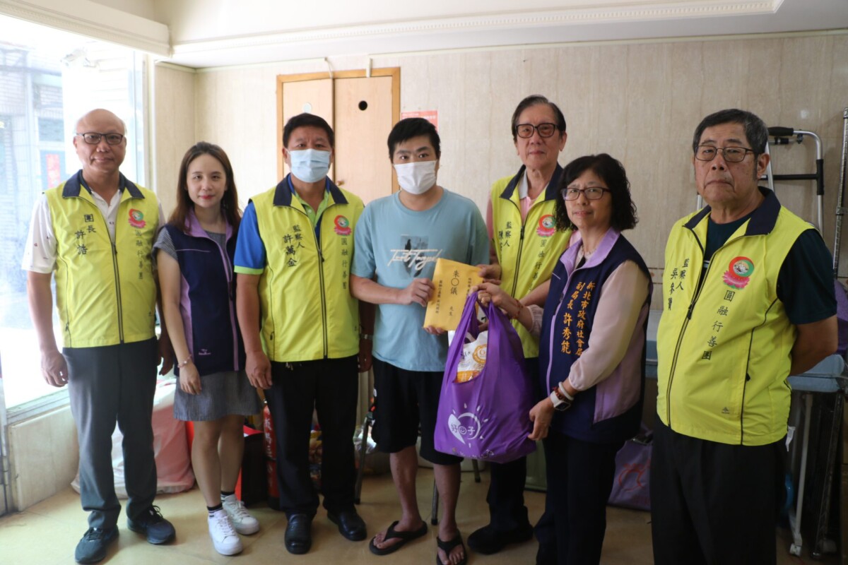 單親的朱爸撫養一名兒子,租屋在板橋南雅一間斗室內,靠打零工維生,朱爸近期因主動脈剝離合併升主動脈瘤,手術後有部分醫療費需自行負擔,加上短期內無法工作而沒了收入,生活陷困。板橋第二社福中心媒合圓融行善團,以1人1千接龍方式,募集18萬5千元,日前由社會局副局長許秀能和圓融行善團長許誥等人,一起將善款送至朱爸住處,並關心朱爸兒子的學業。