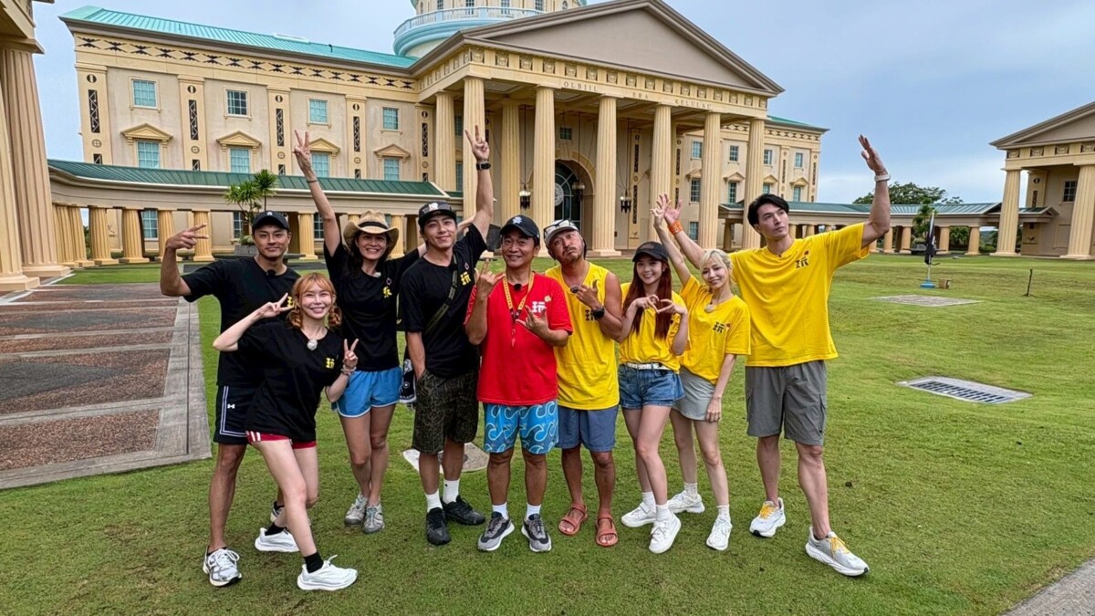 綜藝玩很大本週將播出「帛琉島嶼求生記」(左起)阿樂、孫其君、Janet 謝怡芬、坤達 (謝坤達)、吳宗憲、KID (林柏昇)、笑笑、寶兒、錦榮。(圖:綜藝玩很大)