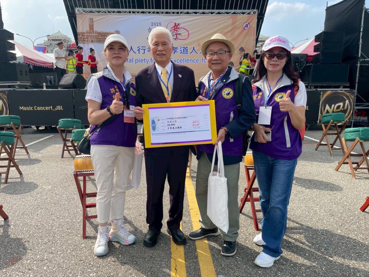 中華道法總會理監事與會員更共同捐款新台幣陸萬元,以實際行動支持中華孝道總會的弘揚孝道與反毒宣導使命,展現宗教與社會團體攜手共善、弘揚大愛的精神風範。