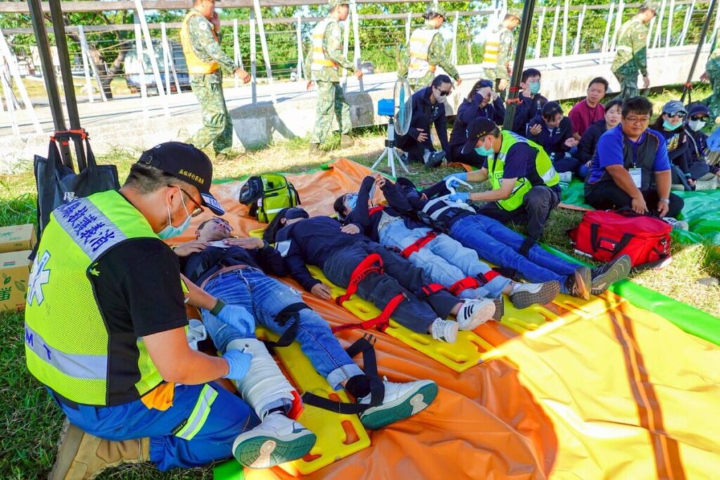 演習中,消防局出動資源執行滅火與搜救並運用消防機器人模擬高危環境搶救;衛生局與四家急救責任醫院設置檢傷站並執行大量傷患分流與後送;國軍及憲兵維持現場秩序;臺東市公所與中華電信分別協助廣播與通訊支援,確保現場運作順暢。