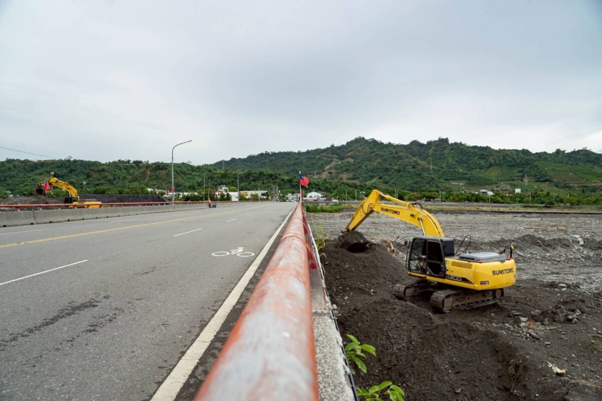 蔡勝雄進一步指出,丹娜絲颱風、樺加沙颱風持續往下游沖刷大量土石,已協調公路局台東工務段,於外環道公共工程借土太平溪河段土石6萬方填築路基,今天開始作業、預定60日完成。