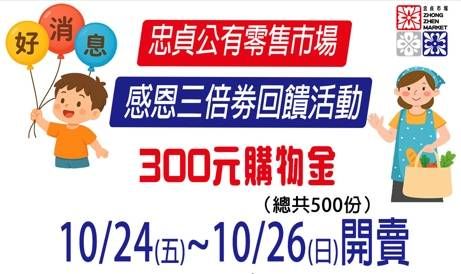 100元當300元用 忠貞市場三倍券活動10/24(五)限量登場