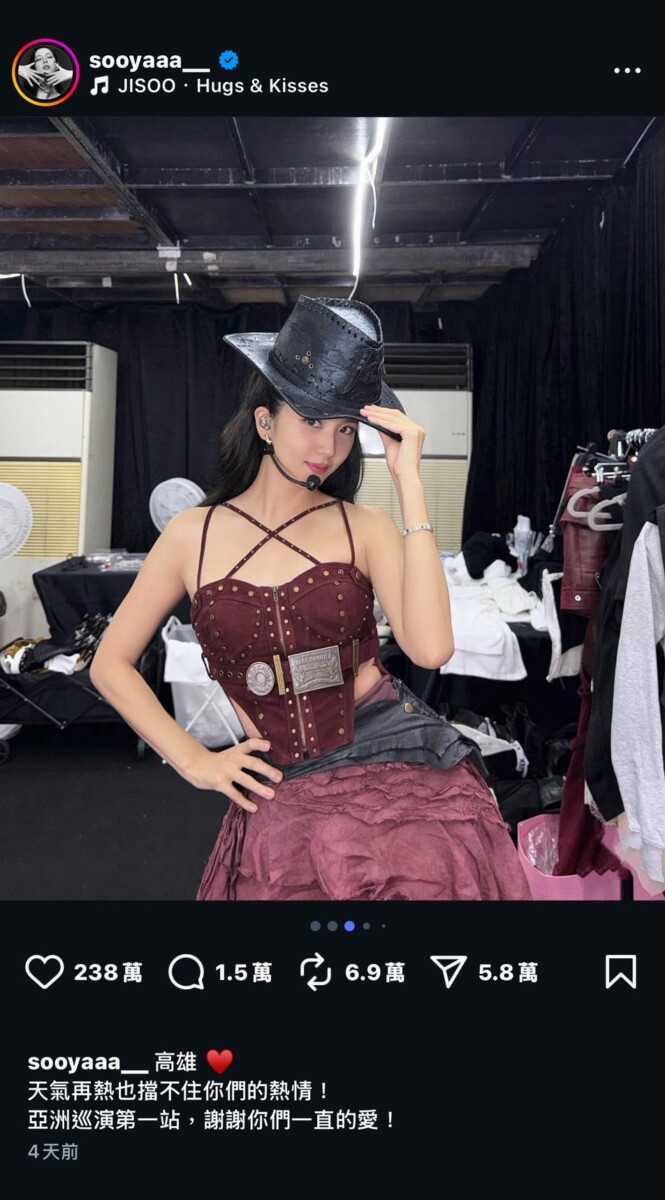 前陣子剛在高雄舉辦完演唱會的JISOO,也非常有誠意地用了繁體中文發文感謝亞洲巡迴第一站的高雄,令全台灣的粉絲都感動不已。
