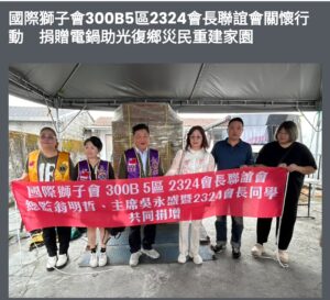 桃園市全媒體記者協會秉持「新聞有溫度、媒體有愛心」的精神,號召桃園市多家企業共同響應「用愛心守護花蓮」捐贈行動。此次由永振膠帶股份有限公司、吳登良建築師事務所、正揚鋼架工程有限公司、寶旺機械股份有限公司、紫稜工程顧問有限公司、褔成工業原料行有限公司等六家愛心企業攜手支持,並獲國際獅子會300B5區2023創區總監翁明哲及平鎮區議員參選人彭柏霖熱情參與,2024總監鄒秀鳳及近50名獅友們共同捐贈1000套愛心棉被送至花蓮災區,為受災民眾傳遞溫暖與關懷。花蓮縣原漾藝文發展協會也捐贈善款於議長。