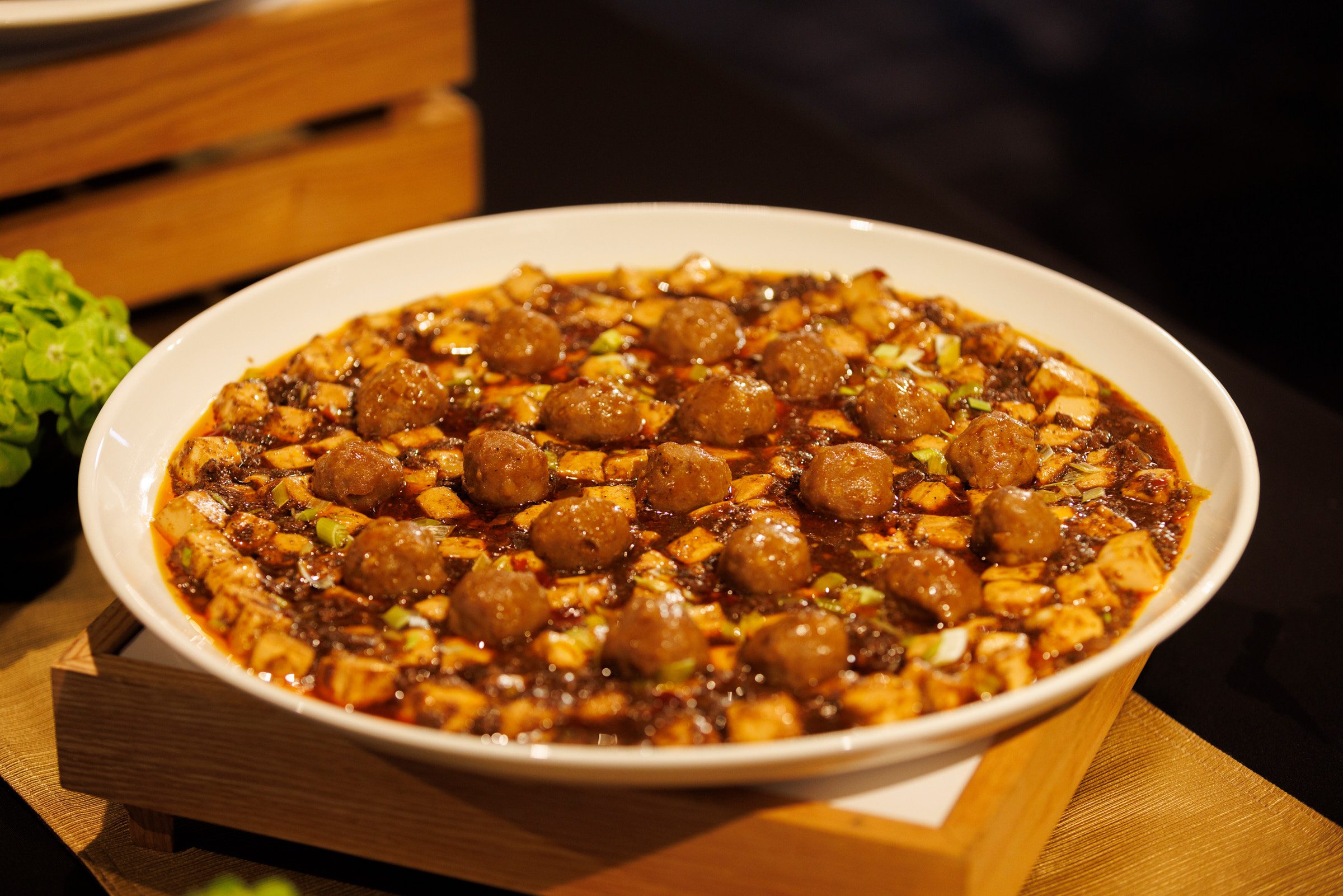 麻婆美國牛肉豆腐香米飯(蘭德牛肉):此道料理融合了中式經典麻婆豆腐的靈魂與美式牛肉的濃郁風味,主廚將蘭德牛肉製成絞肉與肉丸,並以牛花油脂爆香薑末與蒜蓉,搭配特製麻婆醬慢燉,香氣撲鼻,細緻的牛肉口感與豆腐的滑順形成完美對比,麻中帶香、濃而不膩,入口後層次豐富。最後以蒜苗提香,搭配香米飯食用,是道融合川味熱度與美式牛香的創意料理,讓人一試成主顧。