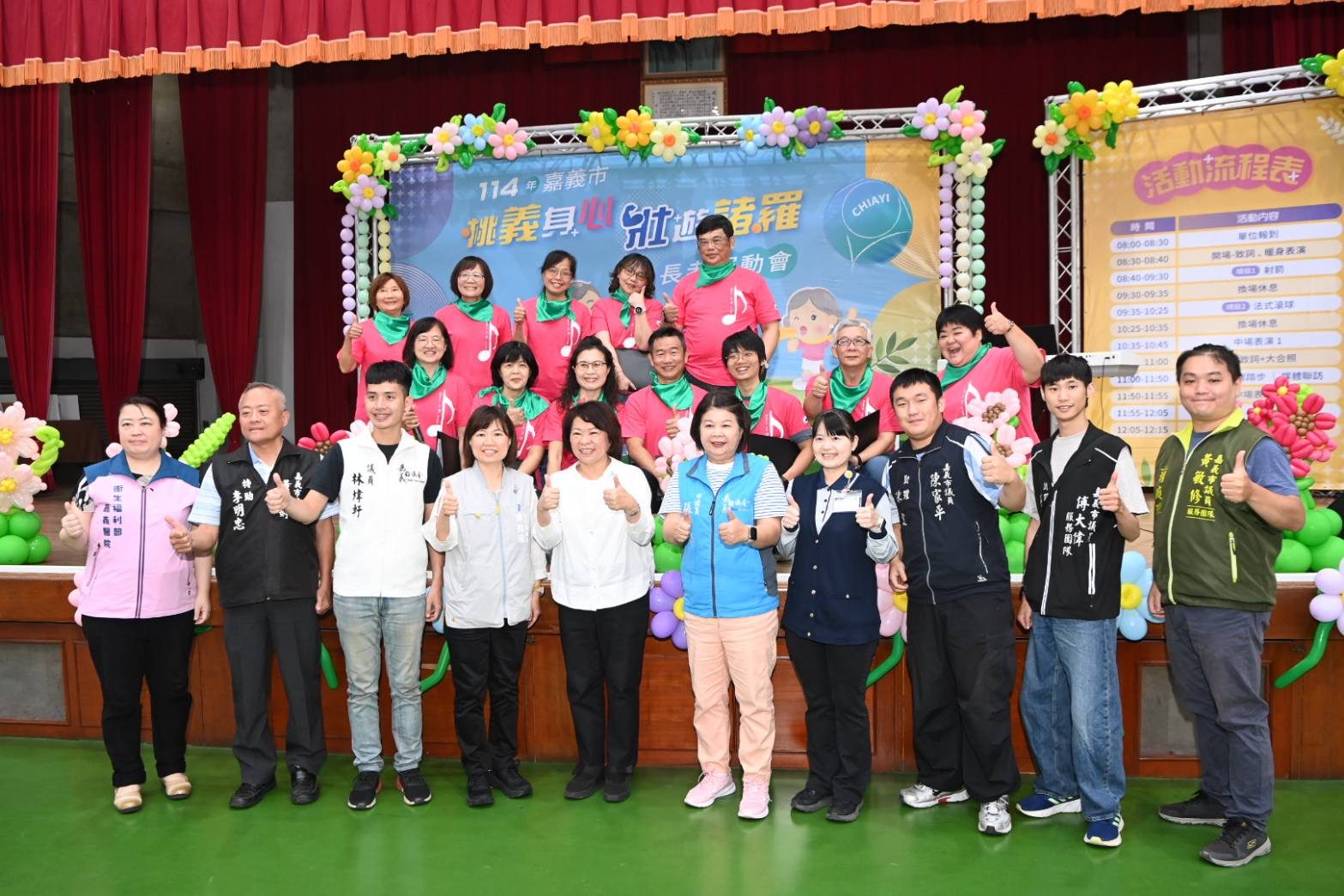 黃敏惠補充,今年首次舉辦「長者運動會」,集結全市20處巷弄長照據點,共有320位長輩參與,其中5位逾90歲,70歲以上比例高達九成。比賽現場活力十足、啦啦隊加油聲不斷,展現嘉義市邁向「慢老、快樂、樂齡永壯」城市的精神。