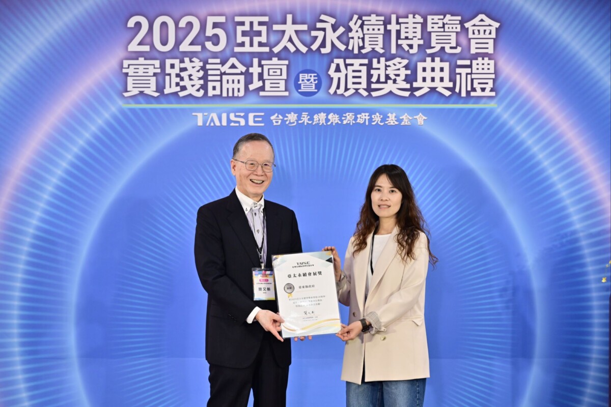 由台灣永續能源研究基金會主辦的「2025亞太永續會展獎」,臺東縣政府以「台東永續概念店」勇奪「銀獎」殊榮,展現臺東在推動永續理念的實踐成果與創新策展能力,日前環保局副局長黃筱芬代表縣府北上,接受基金會簡又新董事長頒獎。