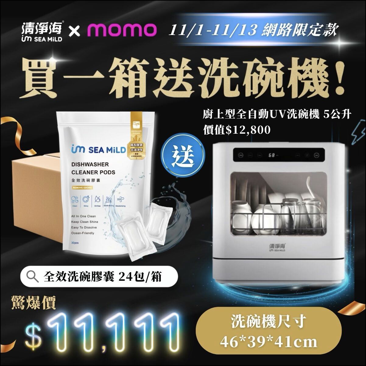 新上市的明星商品「清淨海全效洗碗膠囊」延續清淨海「可溶解、無瓶裝」設計理念,解決傳統瓶裝清潔劑造成的包材浪費問題。結合七大功效,潔淨、亮碟、去油、淨味、軟水、瞬乾、除水垢,幫你省下亮碟劑、軟化鹽用量,此膠囊更能減少塑膠瓶廢棄物對環境的負擔。為迎接即將到來的雙11購物節,推出momo購物限定活動——購買洗碗膠囊就送洗碗機,在體驗潔淨與環保生活的同時,也感受到品牌推廣綠色日常的誠意,讓環保洗劑進入更多家庭的日常生活。