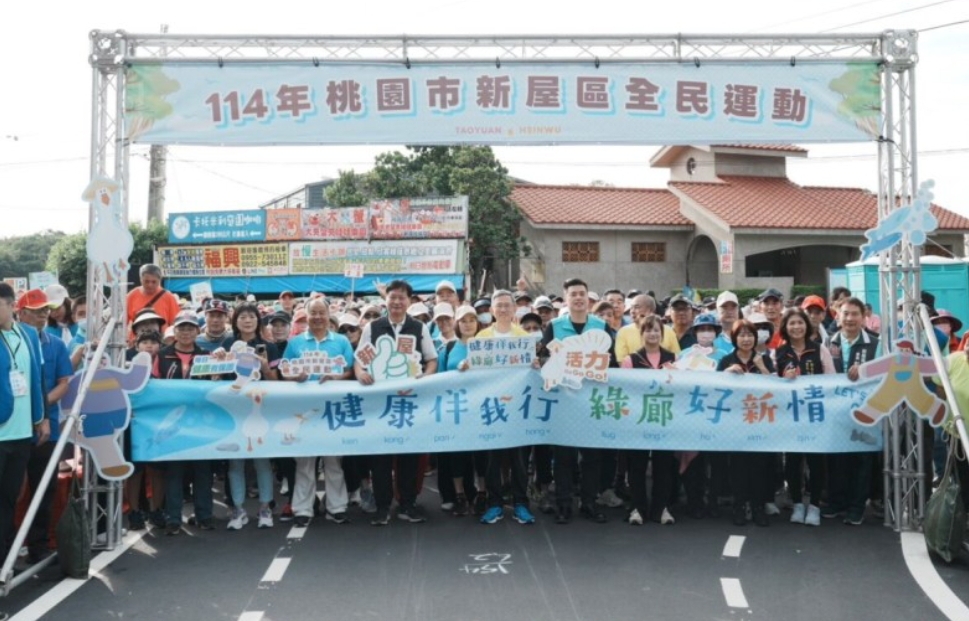 桃園市新屋區公所今(11月1日)於新屋福興宮、綠色隧道盛大舉辦「114 年新屋區 全民運動─健康伴我行‧綠廊好新情」健走活動,吸引近兩千名民眾熱情參與。