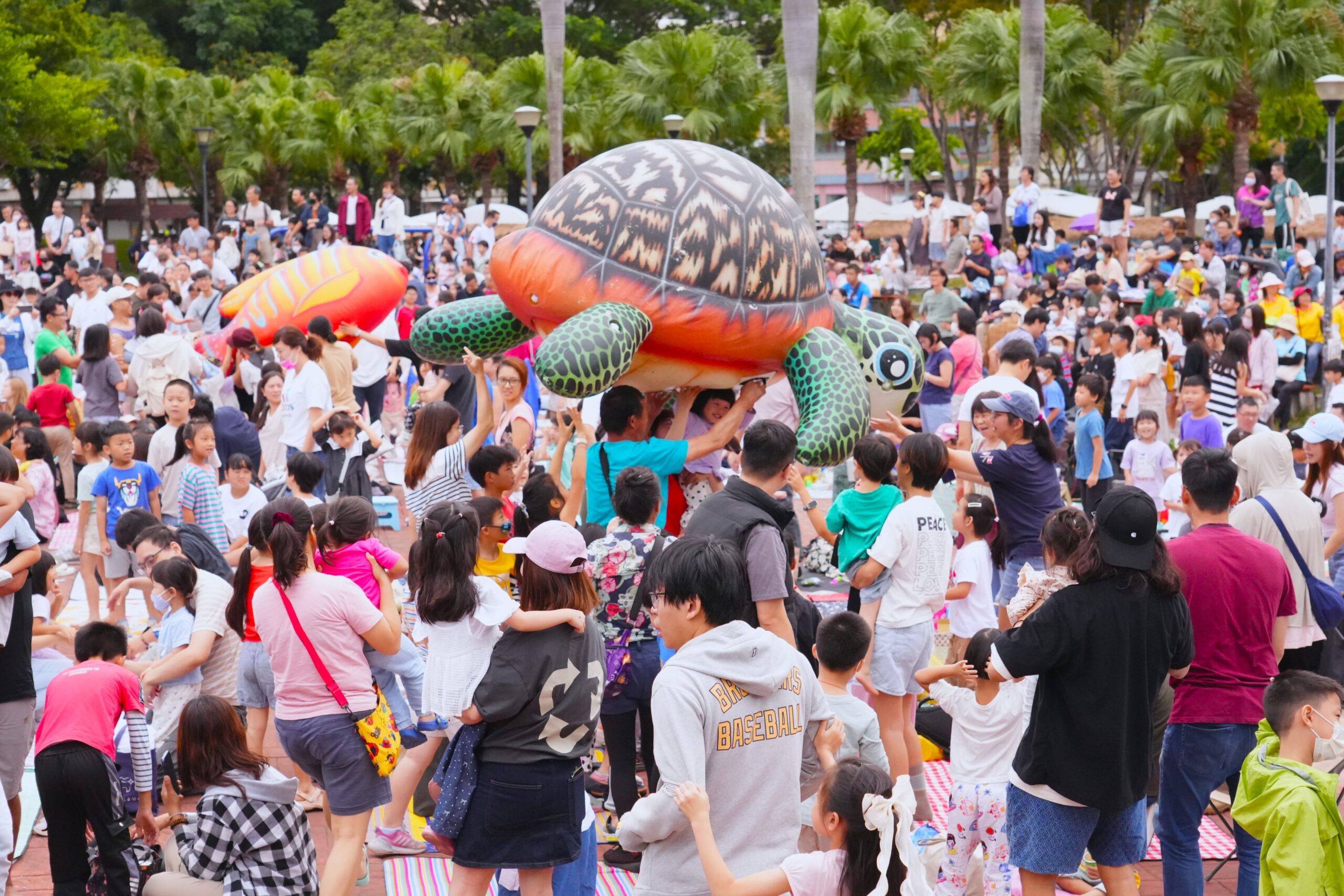2025台中市民野餐日今(2)日在全市29區、共30處地點同步登場,市府民政局攜手北屯區公所在四張犁公園打造「椪柑親子嘉年華」,邀請紙風車劇團帶來經典兒童劇《深海魚劇場》,帶領大小朋友展開奇幻冒險,現場還有多組表演團體輪番演出,以及椪柑市集和閱讀體驗,截至中午已累計逾1.6萬人次湧入,盡情享受草地野餐的魅力。民政局長吳世瑋出席活動與野餐民眾同樂,共度輕鬆愜意的野餐時光。