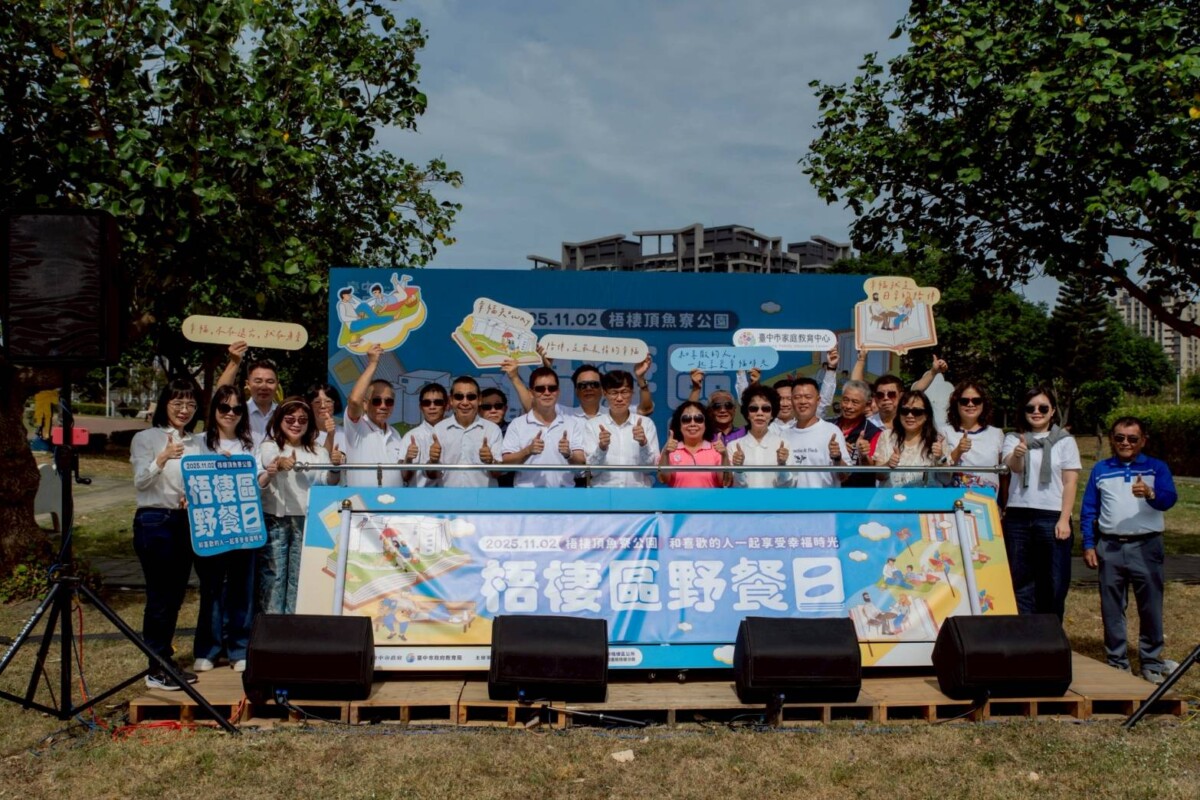 台中市民野餐日今(2)日於全市29區同步登場,為秋日城市注入滿滿幸福能量,由台中市政府教育局與梧棲區公所攜手舉辦的「梧棲區市民野餐日」在頂魚寮公園熱鬧展開,現場陽光明媚、海風輕拂,公園中瀰漫著音樂、書香與笑聲交織的美好氛圍。