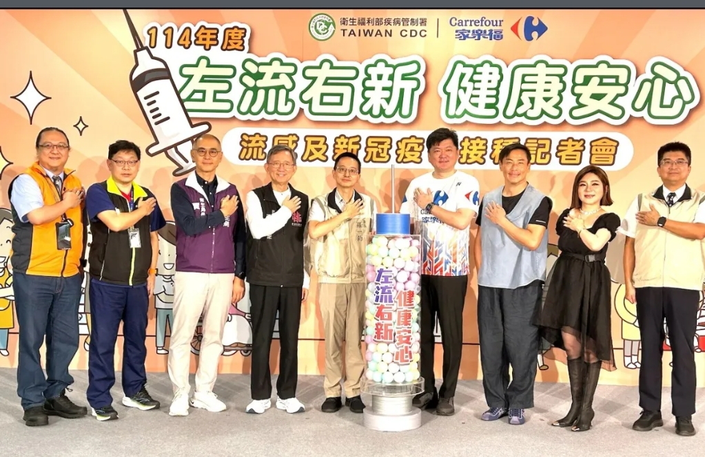 114年度公費流感及新冠疫苗第二階段接種自11月1日開打,為提升民眾接種便利性,疾管署與家樂福合作推出「左流右新 健康安心」活動,鼓勵民眾在購物同時完成疫苗接種,落實全民防疫。