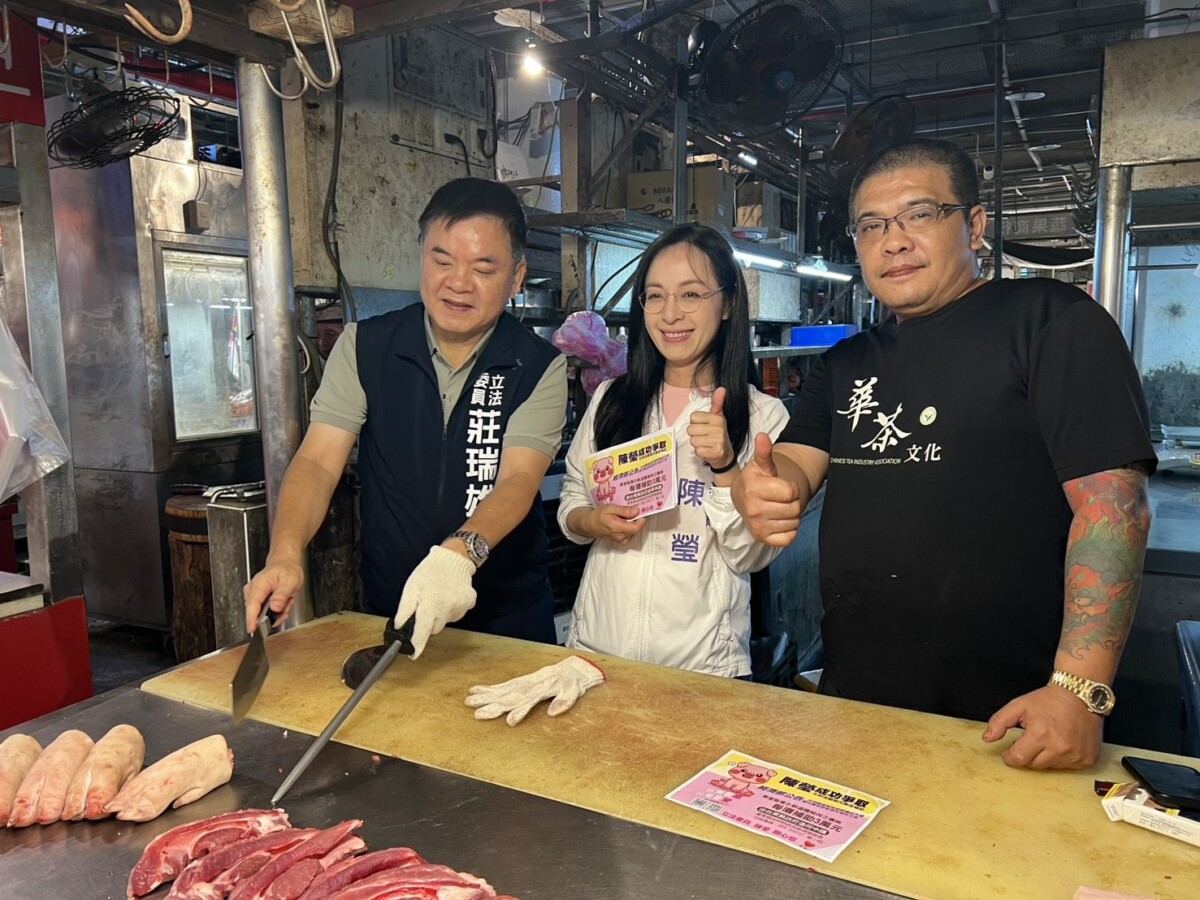豬肉攤商禁令損失補助 每攤3萬元 立委陳瑩、莊瑞雄赴市場宣導補助申請方式