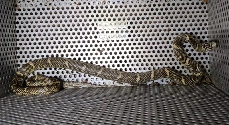 這些蛇種包含玉米蛇、帝王奶蛇、球蟒、黑王蛇及紅尾蚺等,上述蛇種雖多數性情溫馴、無毒,但具備極強的鑽洞、攀爬與擠壓能力,只要飼養器具有適當的縫隙、蓋子未鎖牢或損壞,便有可能逃脫。一旦脫逃,寵物蛇容易暴露於車輛、犬貓或遭不熟悉蛇類民眾攻擊等危險環境,也可能闖入附近民宅引發恐慌。請飼主務必在保障空氣流通的前提下,使用堅固、密合甚至是具有鎖扣的飼養設備,並定期檢查器具是否有鬆動、破洞或空隙,避免蛇類逃脫。