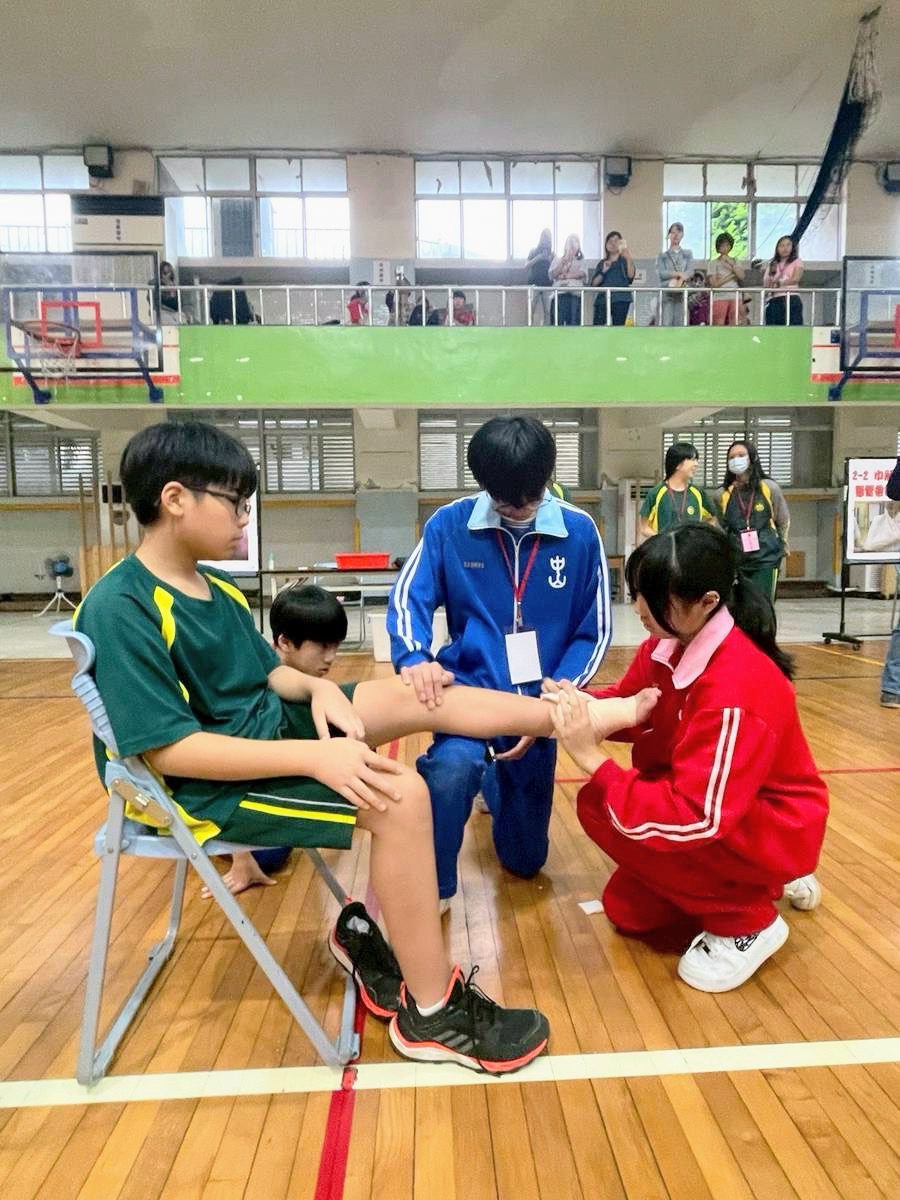 面對巨災常態化,急救已不只是專業人員的責任,更是全民所需具備的素養。今(114)年的競賽突破性地增加了CPR及AED的實戰考驗,以包紮競賽為主、心肺復甦術為輔,實際讓同學動手操作,在所有流程皆完成標準後,運用計分安妮判斷成績高低。歷年來包紮競賽的參賽隊伍已比到爭分奪秒的白熱化階段,不僅考量到包紮過程中重視患者的舒適性,在救護技巧上也更重視細節。參賽同學說:「我們平常在學校利用瑣碎的時間練習,老師有提醒我們容易扣分的地方,所以就要花更多時間去熟練」。