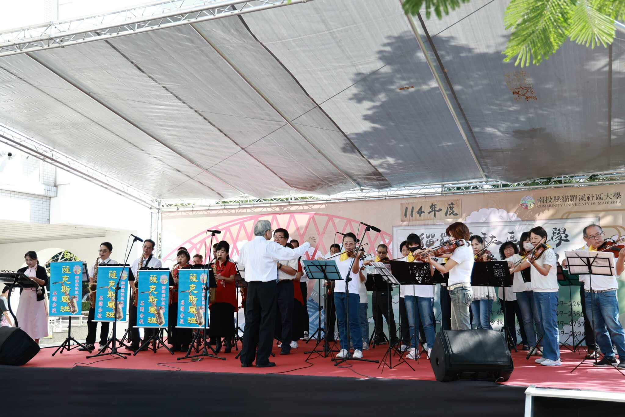 活動開場演出為「小提琴+薩克斯風」,是由該校薩克斯風講師石春山編曲,重新編寫小提琴譜,融合薩克斯風曲風,相當特別。許縣長親自頒獎表揚任教 10 年以上的32位教師和年齡 70 歲以上的8位資深教師,感謝他們長期投入社大的課程教學,無私奉獻和傳承。