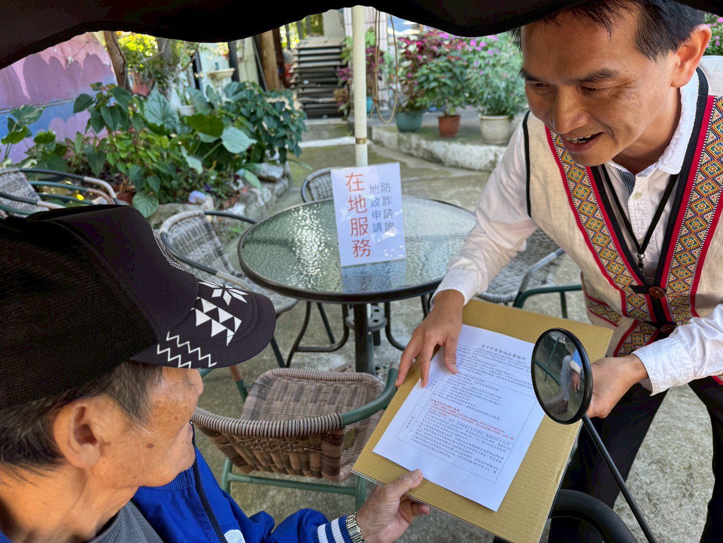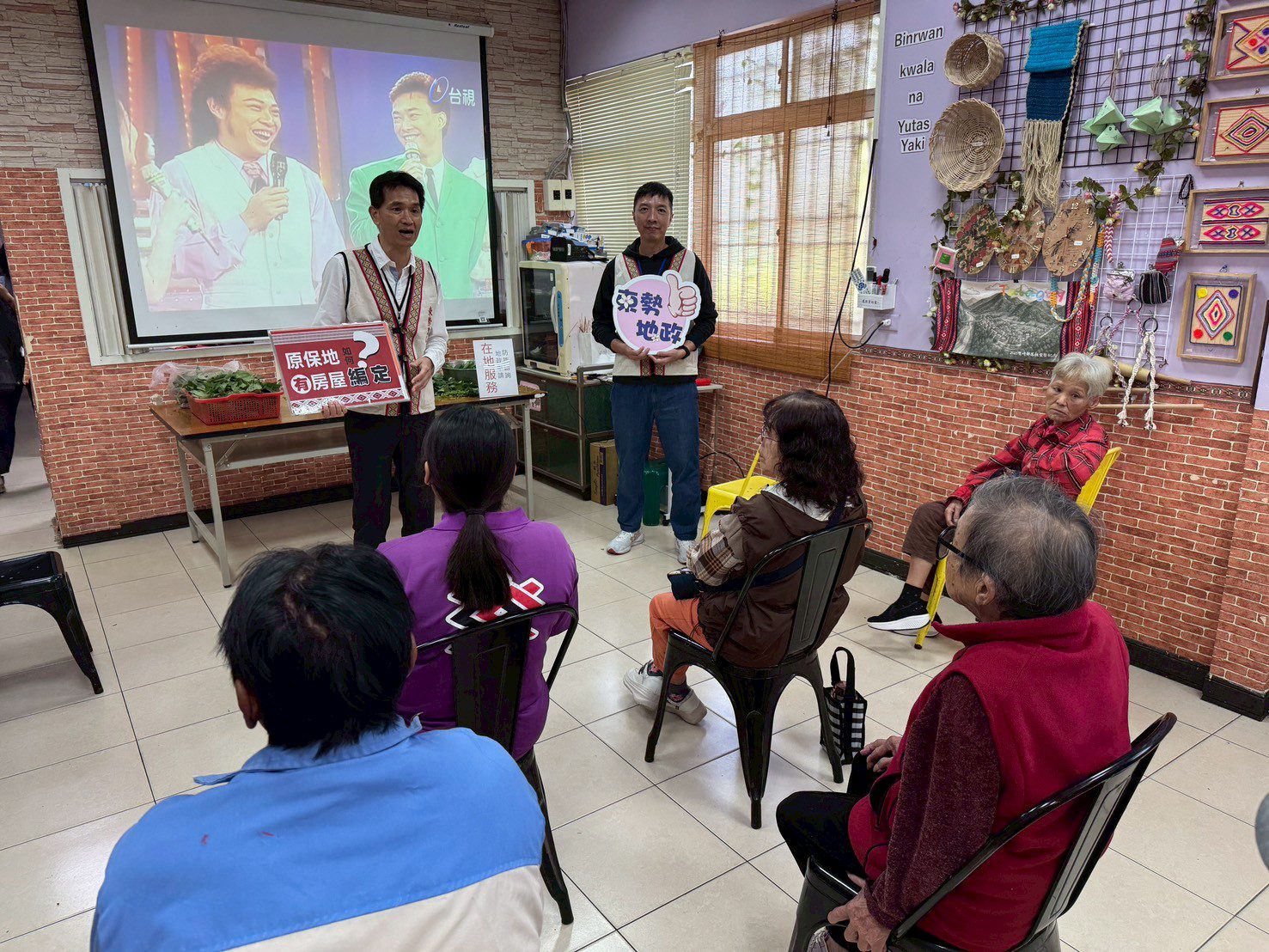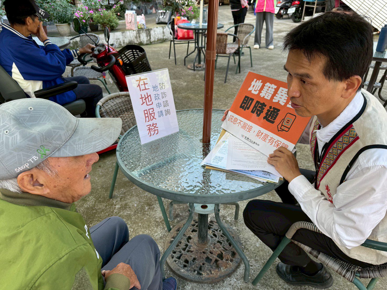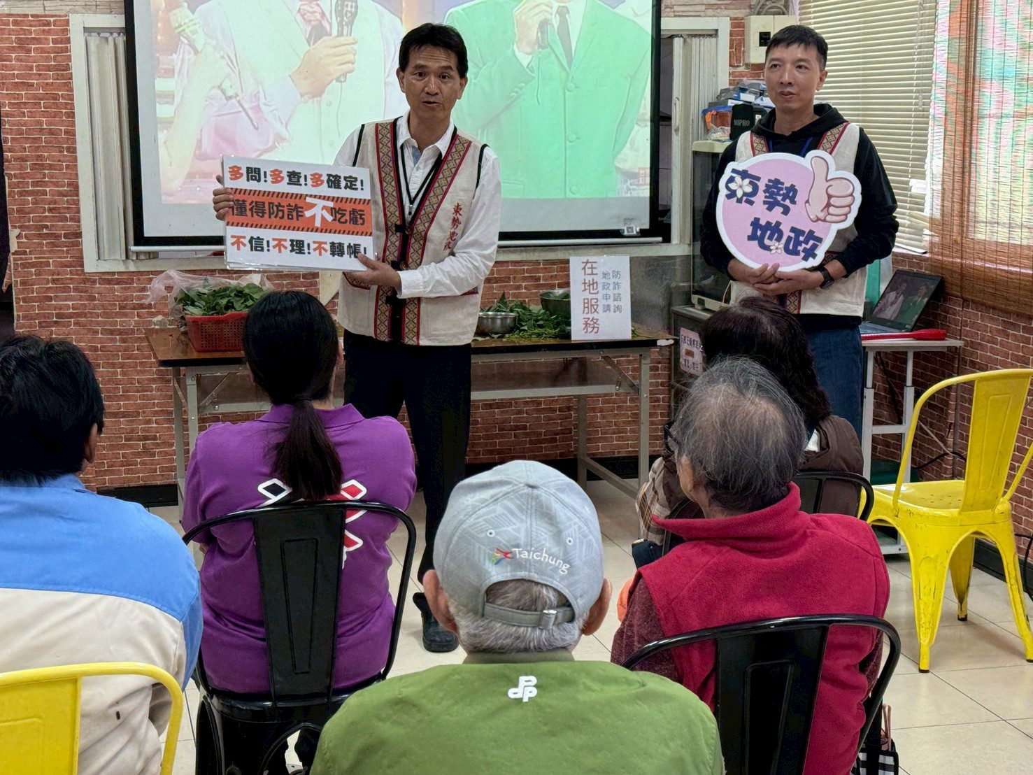 台中市不動產防詐宣導前進原鄉!東勢地政事務所昨(14)日於雙崎文化健康站,以實際案例向偏鄉居民說明近期常見的不動產詐騙手法與防範方式,並透過簡易表單解說「都市計畫外原住民保留地」上,實施建築管理前之舊有房屋能否申請建築用地編定。互動式諮詢服務獲得山區居民熱烈迴響。