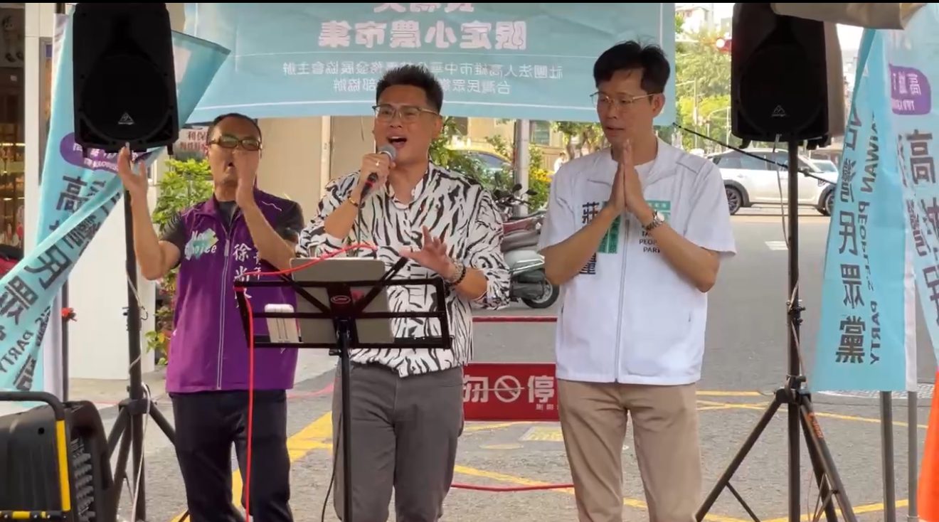 圖説:《超級紅人榜》歌手【柯瑞勝】也特別到場演唱,用歌聲溫暖社區。(民眾黨提供)