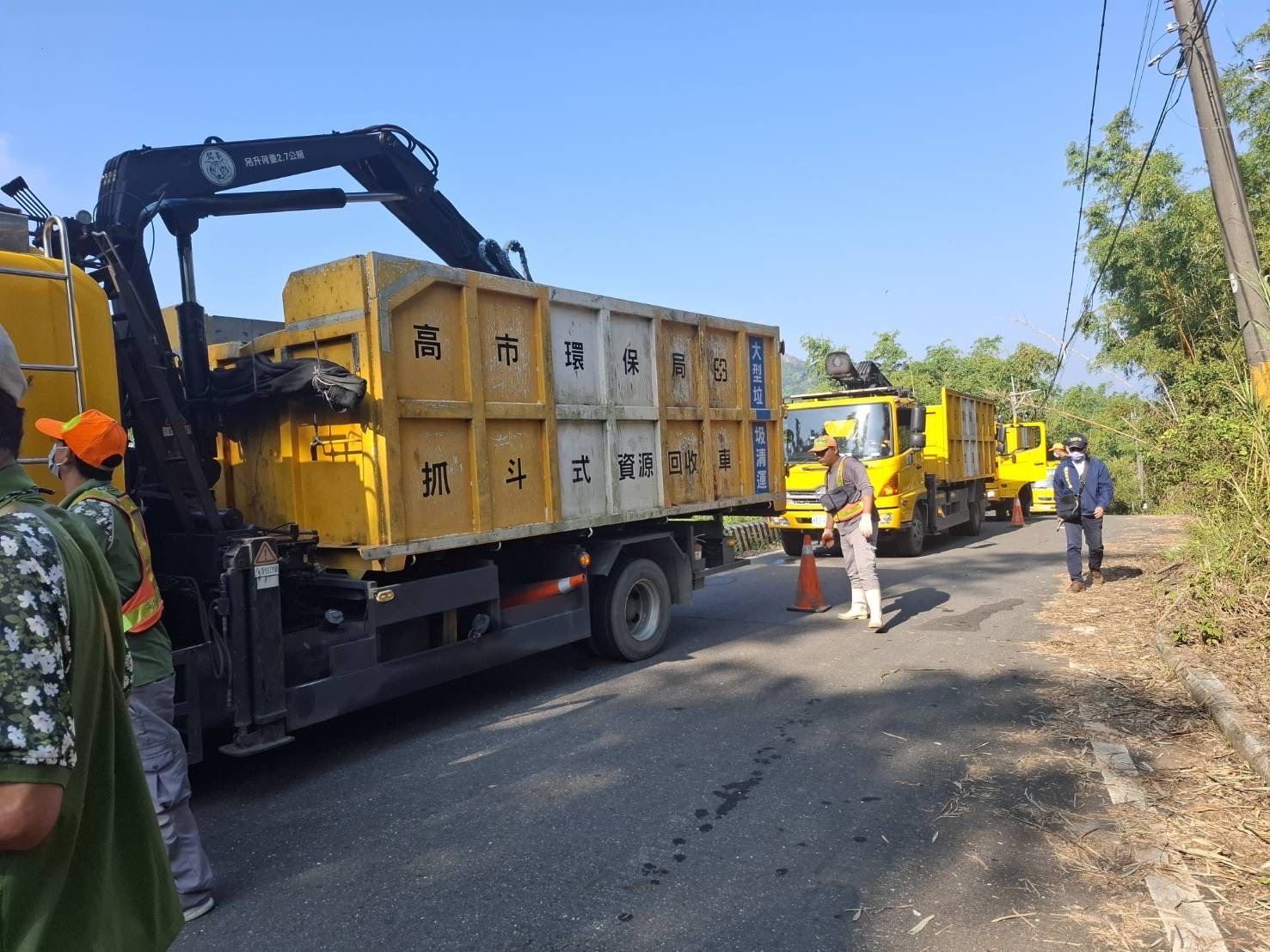 圖説:環保局立即調派燕巢等7個區隊13部車輛到場清理。(環保局提供)