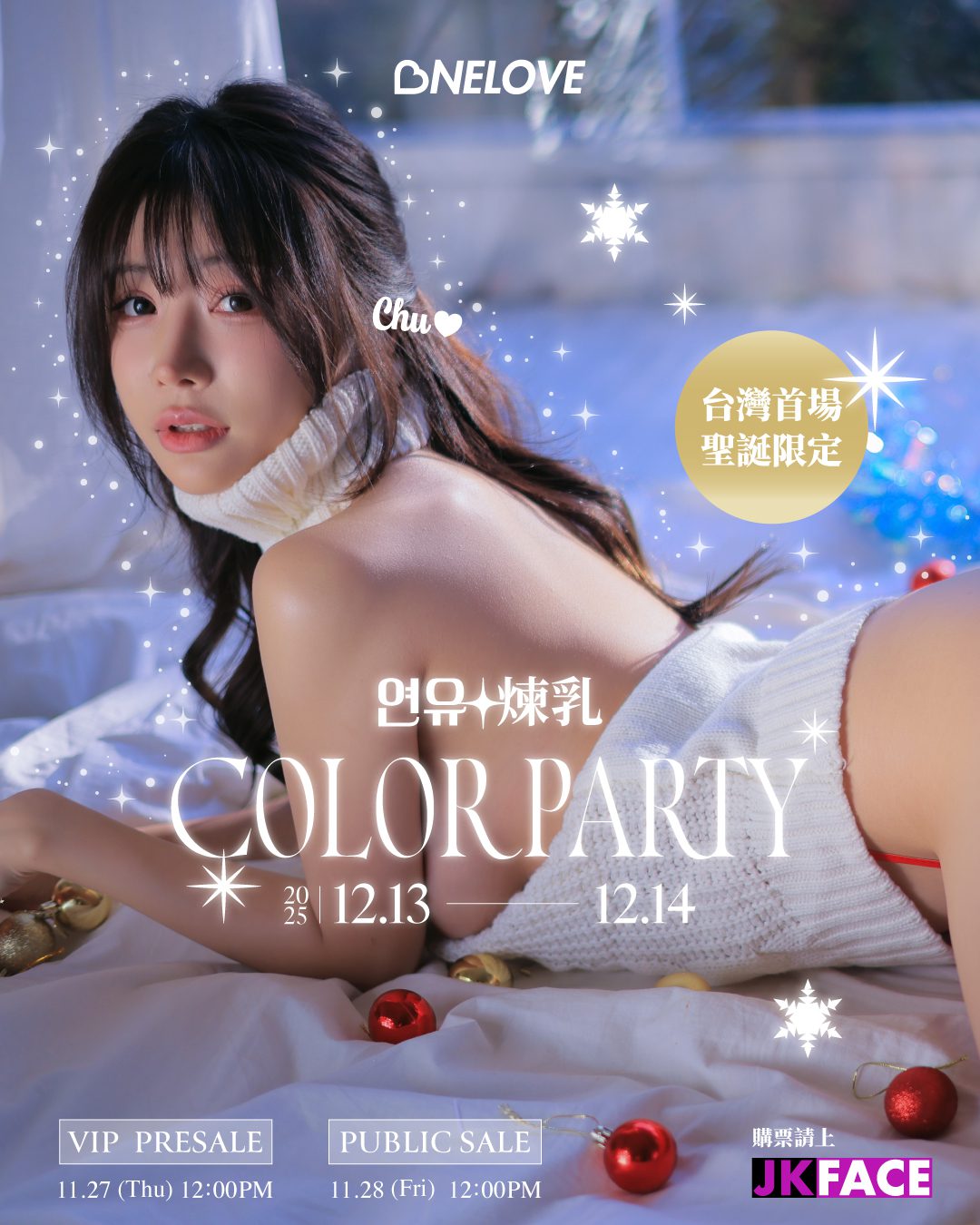 最火辣的聖誕節即將來臨!OneLove萬楽日前釋出「韓國乳系大學生」、「韓版桃乃木」、「雪乳螞蟻腰」等關鍵字,謎底揭曉後幾乎令粉絲暴動,原來是預告「暗黑版李珠珢」煉乳연유即將來台,於12月13日、14日舉辦「煉乳Color Party聖誕限定場」見面會,不僅會首次公開媲美「韓星等級」的火辣熱舞,還有聖誕節限定性感互動,保證讓粉絲臉紅心跳。