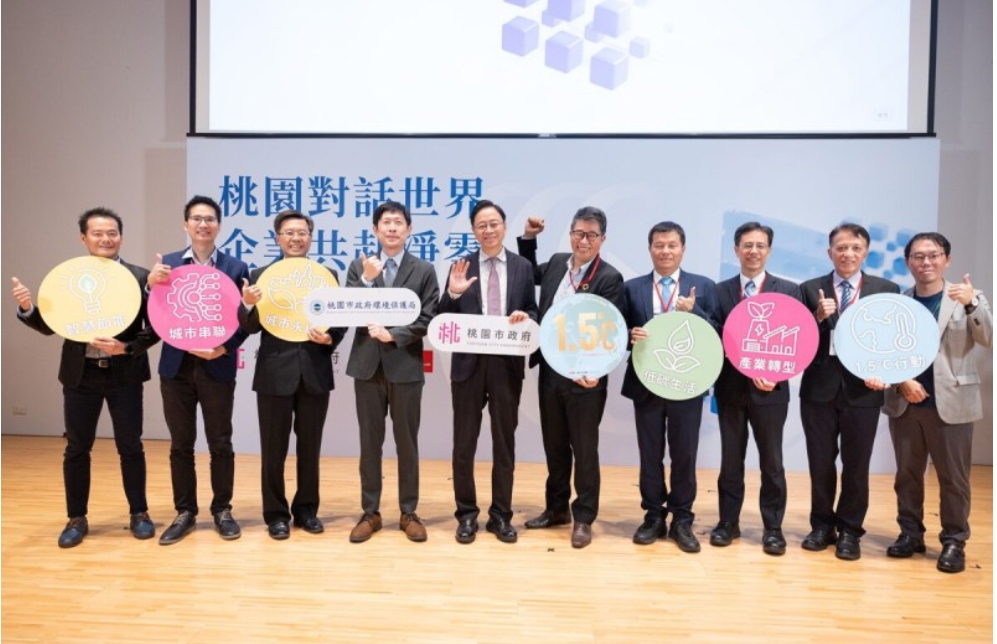 桃園市環保局18日在桃園市立圖書館總館舉辦「桃園企業 1.5°C 論壇暨授證儀式」張善政市長也親自出席授證儀式,表揚包含鴻海精密、遠東新世紀、躍登科技等32家企業,張市長肯定在地企業推動減碳、能源轉型及碳管理制度化,展現對全球升溫不超過 1.5°C 的行動承諾。