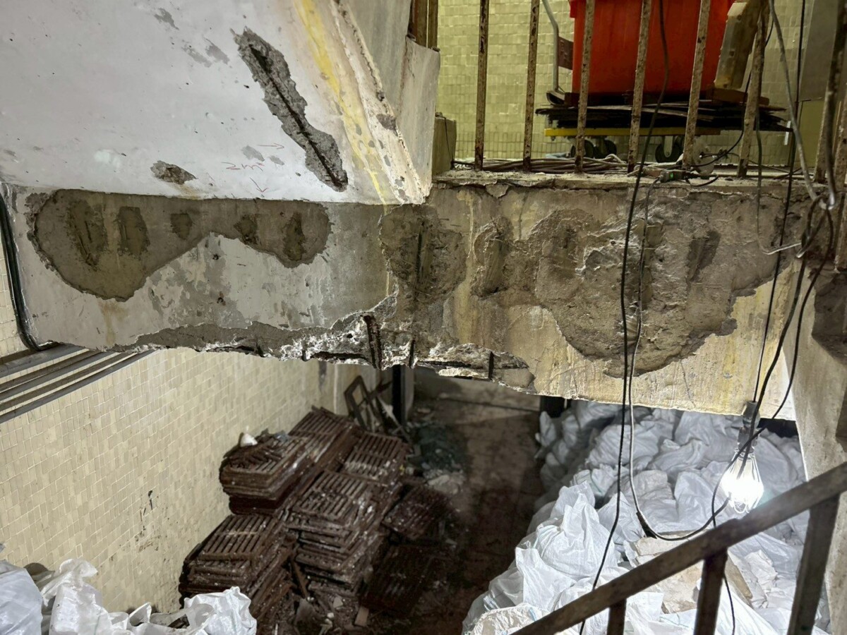 市立游泳池部分區域鋼筋鏽蝕混泥土剝落。