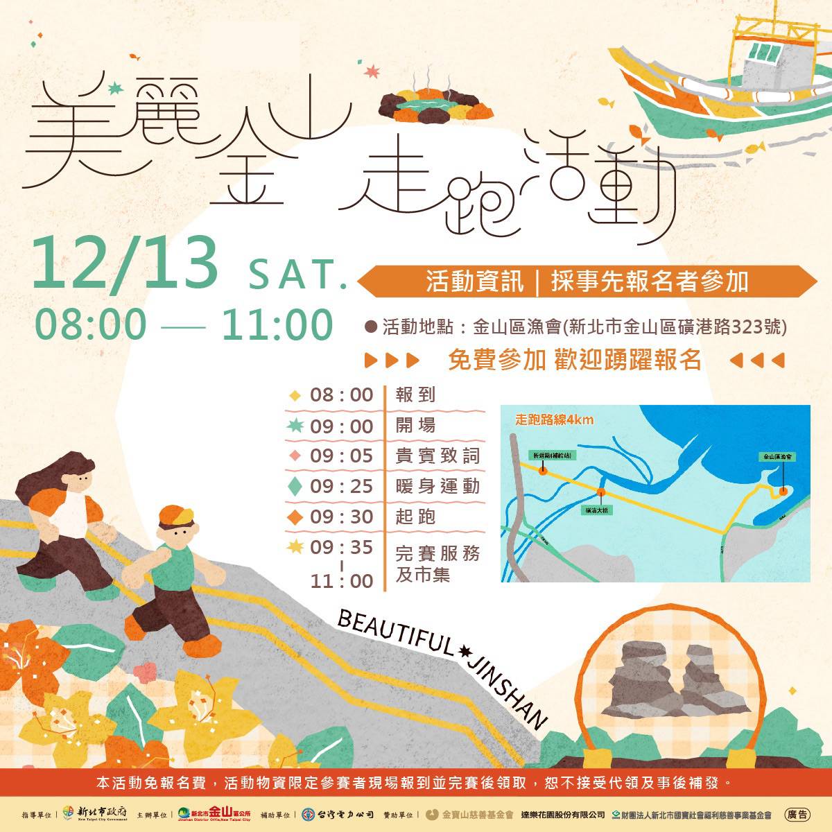新北市金山區公所將於114年12月13日(星期六)上午盛大舉辦「美麗金山走跑活動」,預計吸引1,200名民眾參與。今年除了提供900名網路報名名額外,亦規劃300名現場臨櫃報名,優先邀請在地居民一同響應,以最輕鬆的方式享受金山山海的晨間美景,迎接冬季的暖日。