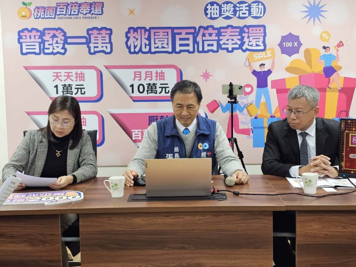 「普發一萬 桃園百倍奉還」活動將持續至 12月31日,活動期間於登記地址在桃園市的店家消費並開立有效發票者,只要於 115年1月7日前完成登錄,即可參加抽獎,有機會把百萬現金帶回家。更多活動資訊,請上「桃園百倍奉還」官網查詢。