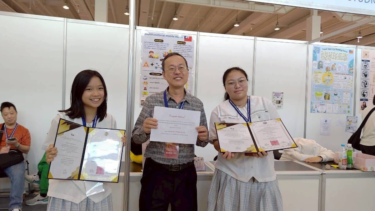 「除了發明展與簡報賽,本屆新增『國際小評審』制度,本社有五位同學—廖家進、林信如、徐維辰、林信亨、楊絜如—獲選擔任。他們在參賽之外,還能親自評分國際優良作品,從不同角度學習,非常難得。」
