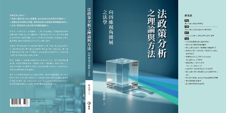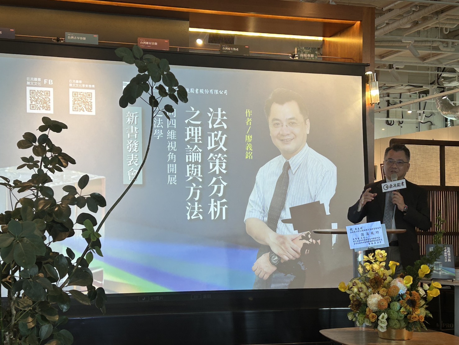 國立高雄大學政治法律學系廖義銘教授最新著作《法政策分析之理論與方法》於12月13日正式出版,並在高雄承風書店舉行新書分享會。該書彙整廖教授多年來對法律、治理與公共政策的研究成果,首次將「法政策分析」的理論與方法系統化呈現,為國內法學研究提供嶄新的分析框架,出版後即引發學界高度關注。活動由《當代法律雜誌》執行長廖宏偉主持,高雄大學資訊管理學系副教授楊書成與談,並由巨流圖書股份有限公司主辦。