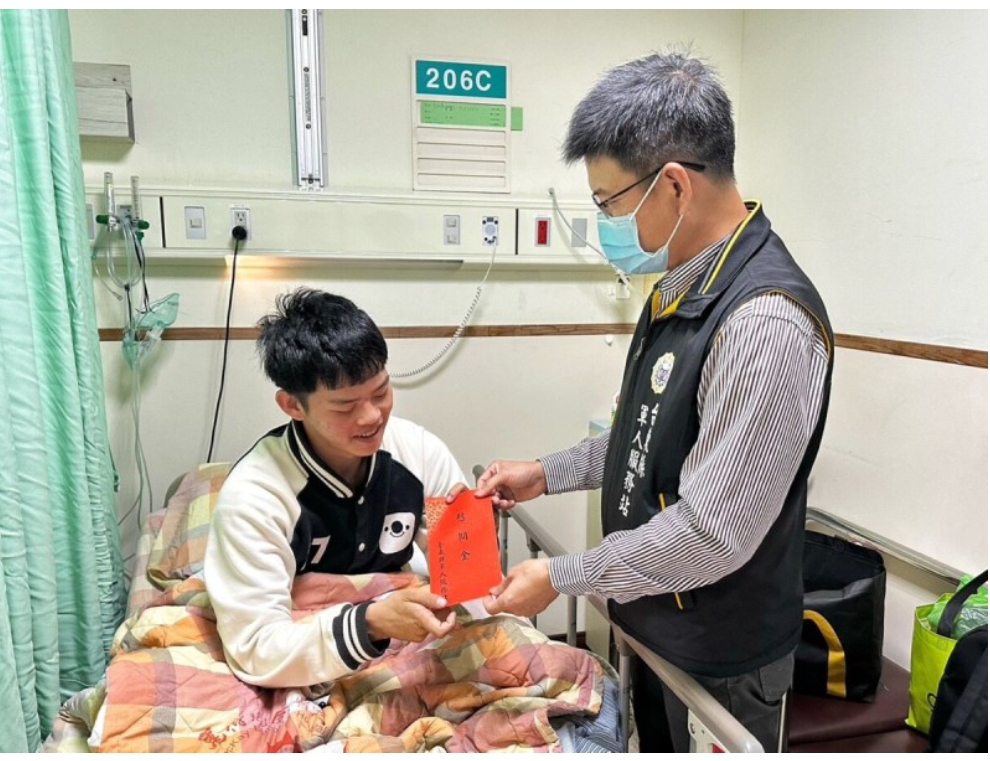 曾仁政除關心李兵病情及話家常,同時祝褔早日康復,盼能儘早重返工作崗位外,並指出,急難病困慰助工作是軍友社主軸工作之一,同時也希望透過此一慰問工作,能讓官兵及眷屬感受到部隊、軍友社及社會各界即時的關懷。