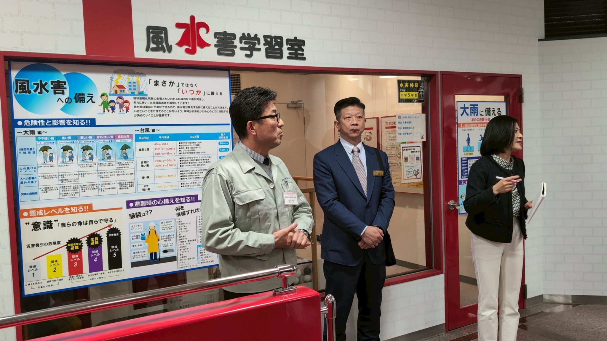 同時亦參訪國土交通省九州地方整備局筑後川河川事務所,由所長塚原隆夫(つかはら たかお)親自接待,詳細介紹日本推動「流域治水」的政策理念與實務作法。透過長期且持續的投入,如同「石上三年」般累積制度與技術能量,將河川治理、土地利用、防災資訊共享及跨機關合作整合推進,有效降低洪水風險,並兼顧「減災」與「防災」目標,為因應近年頻發的極端降雨與河川治理課題,提供了極具參考價值的實務經驗。