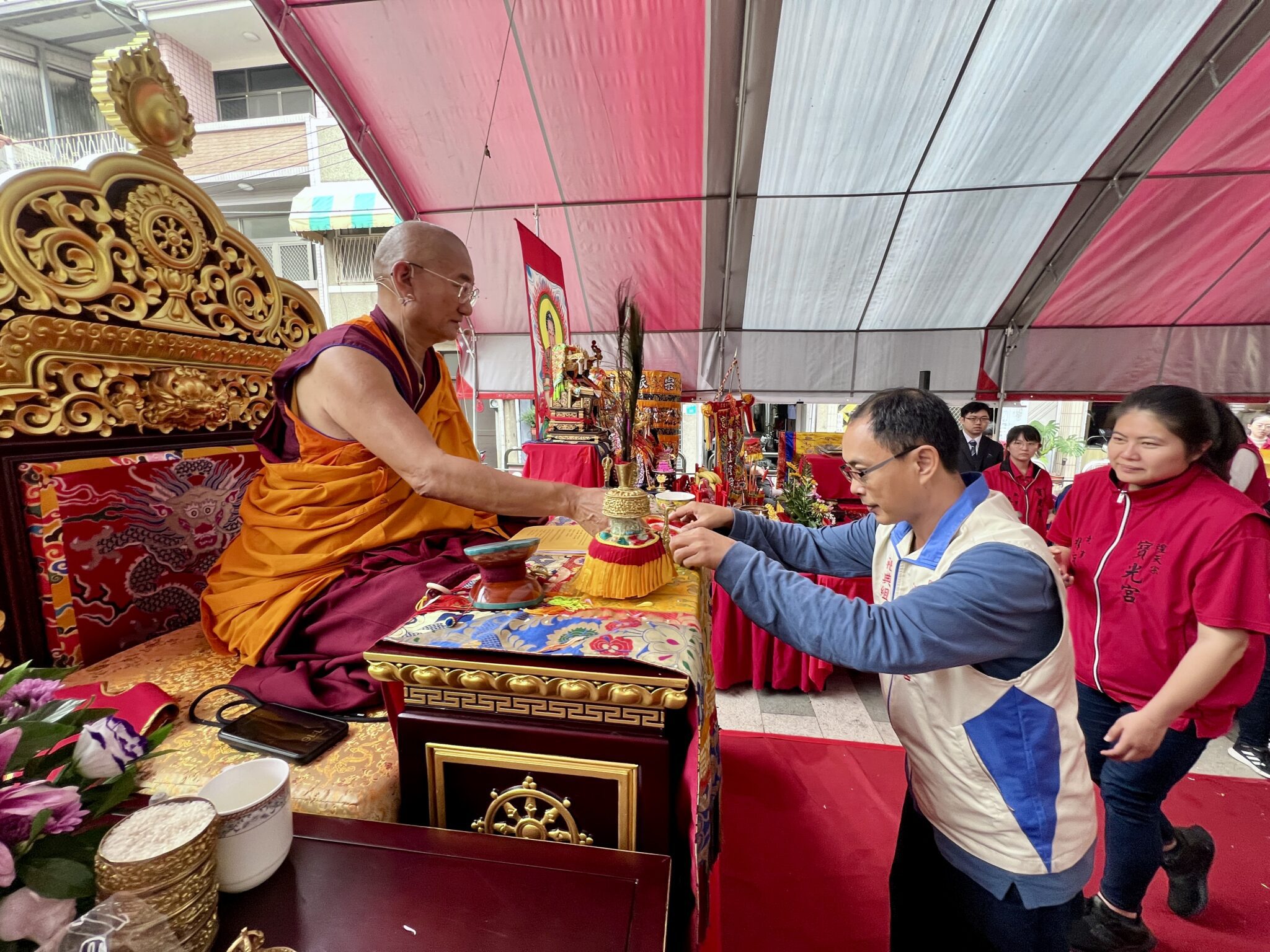 圓滿之際,信眾依序向法王致意,並向媽祖 敬獻壽桃。不少與會者分享,這是一場 奇妙而難能可貴 的宗教融合實踐——不只儀軌莊嚴,更在人心中播下慈悲、理解與和合的種子。