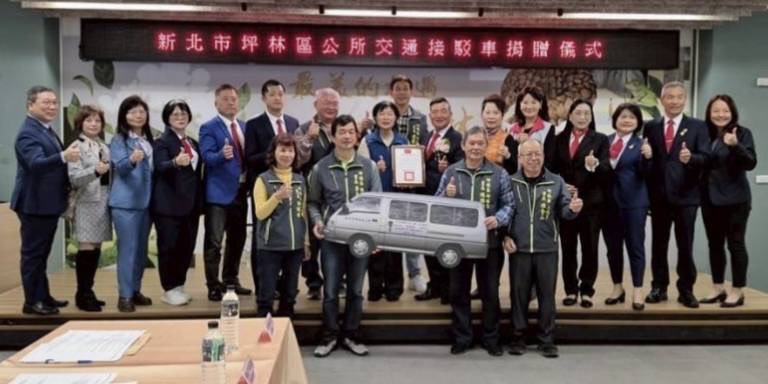中華民國獅子會創會會長總會於今日在新北市坪林區舉行交通接駁車捐贈儀式,由創會會長總會鐘建振總會長代表捐贈。鐘總會長身為新北市坪林區市民,長期心繫地方發展與鄉親福祉,秉持回饋故鄉的初衷,特別以總會名義捐贈交通接駁車,實際改善坪林區山區交通需求。