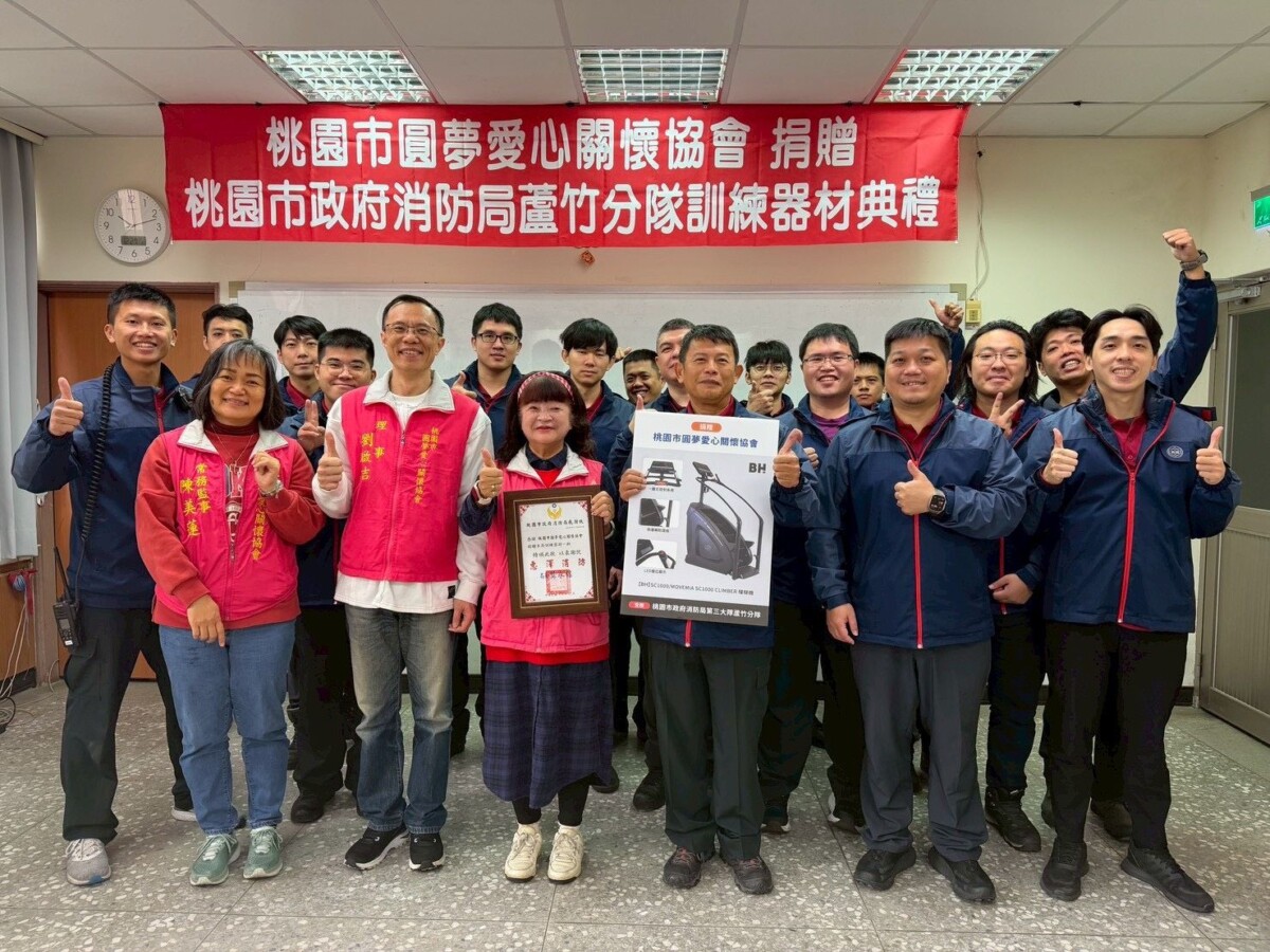 為強化消防人員體能訓練與救災量能,桃園市圓夢愛心關懷協會於(27)日捐贈一部訓練用樓梯機予桃園市政府消防局第三大隊蘆竹分隊,期盼透過完善的訓練設備,協助第一線消防人員提升體能與專業表現,進而守護更多市民生命安全。