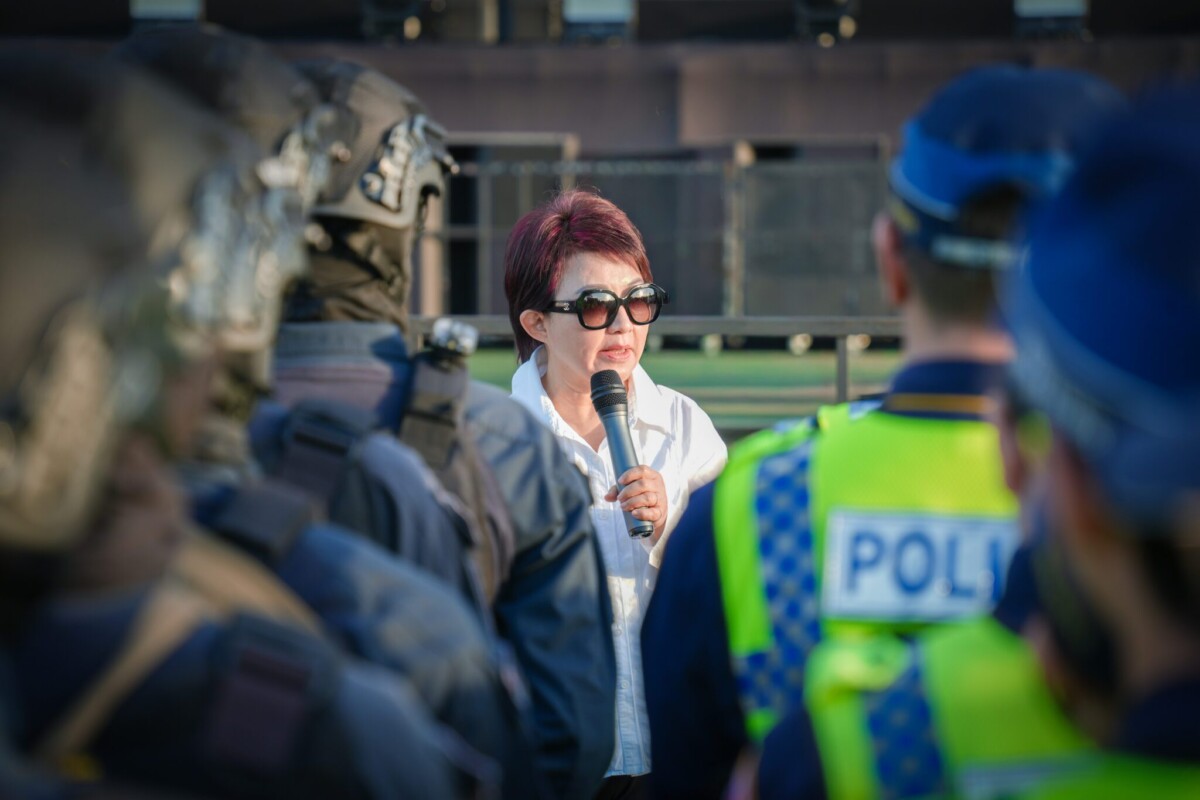 盧市長也向現場警消同仁精神喊話,強調台中為全國第二大城市,近期大型活動密集,維安任務相對繁重,感謝第一線人員的辛勞與付出。她說,市府自北捷事件後即啟動第一階段維安控管,並針對跨年及後續多場大型活動持續檢討與強化部署。她對各系統團隊非常有信心,期勉大家齊心完成任務,讓所有市民都能平安、安心迎新年,也提醒同仁務必照顧自身健康,城市安全有賴大家共同守護。