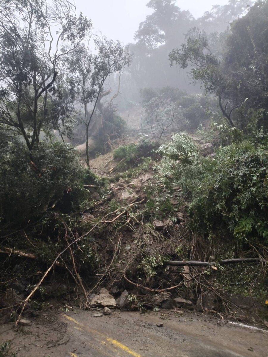 中橫公路宜蘭支線台7甲線35.9公里(米摩登路段)上邊坡於2日上午7時發生無預警坍方事件,經公路單位全力搶災下於下午1時30分搶通放行,因鑑於災點現場上邊坡仍蓄積大量坍土浮石、穩定性欠佳。