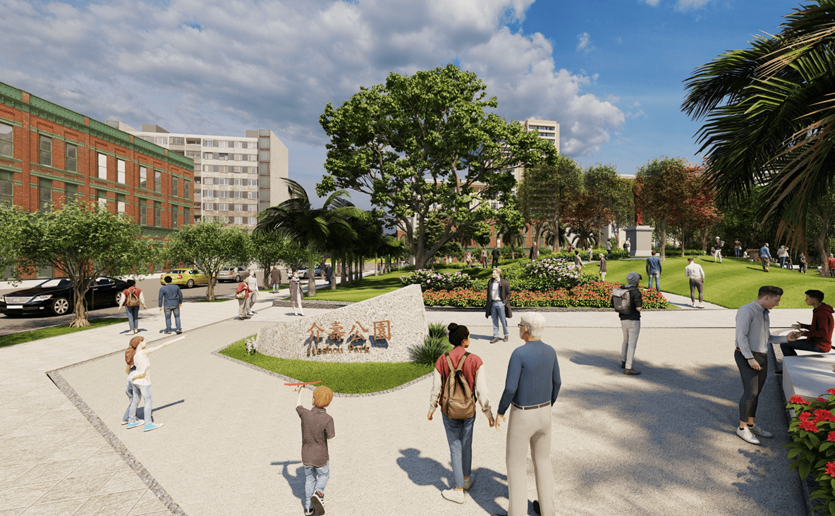 公園處向民眾說明設計構想內容,公園歷經四個不同時期建造、東西兩側截然不同風格,藉由本次整建改造重新整合元素,透過園路重新配置,並設計歷史「文化時光長廊」以改善阻隔感,同時將「現地綠資源梳理」、增設「雨水回收利用及流出抑制設施」及保留「綠意草皮」,落實城市降溫及海綿城市政策,此外,亦規劃拍攝總統府最佳景點「入口階梯廣場」,形塑府前拍照新亮點,獲得民眾熱烈回響。