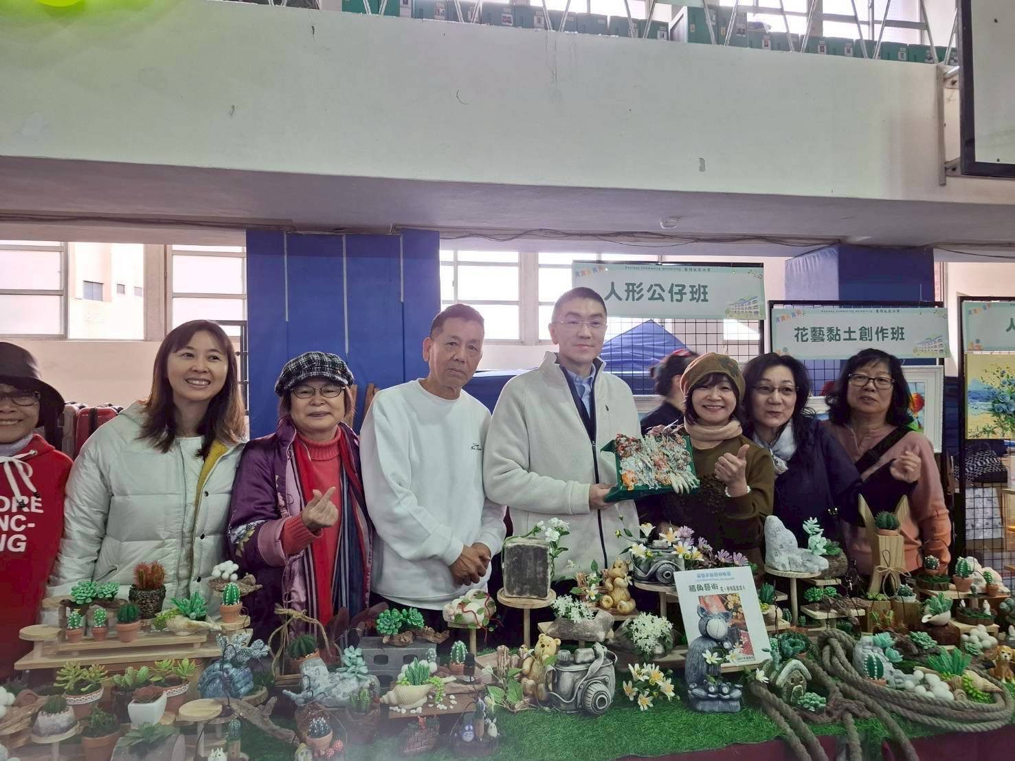 而為了拓展城市觀光行銷,基隆社大也與各單位跨界合作,培養文史及雙語導覽人才,並且都已經為國際與各縣市訪客的服務中介紹基隆之美與豐厚的人文底蘊。他也提到在這裡許多原本互不認識的市民,都因為學習而齊聚一堂並且成為朋友,甚至一起從事公益讓基隆更加溫暖有愛。他特別肯定社大師生與行政團隊的努力,並號召民眾在幸福有愛的城市一起享受快樂學習。隨後謝國樑也到各展示攤位為師生加油打氣。