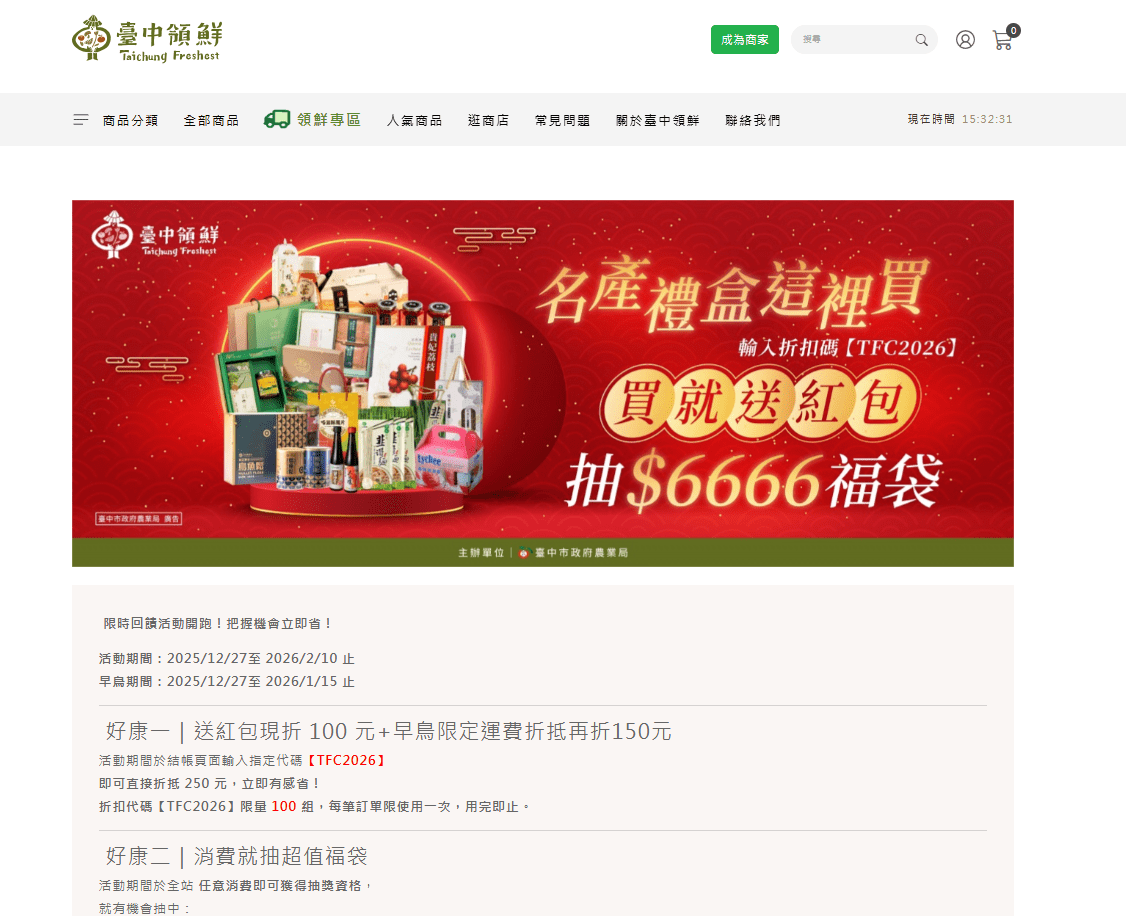 【臺中領鮮】電商平台新春專區活動頁面截圖