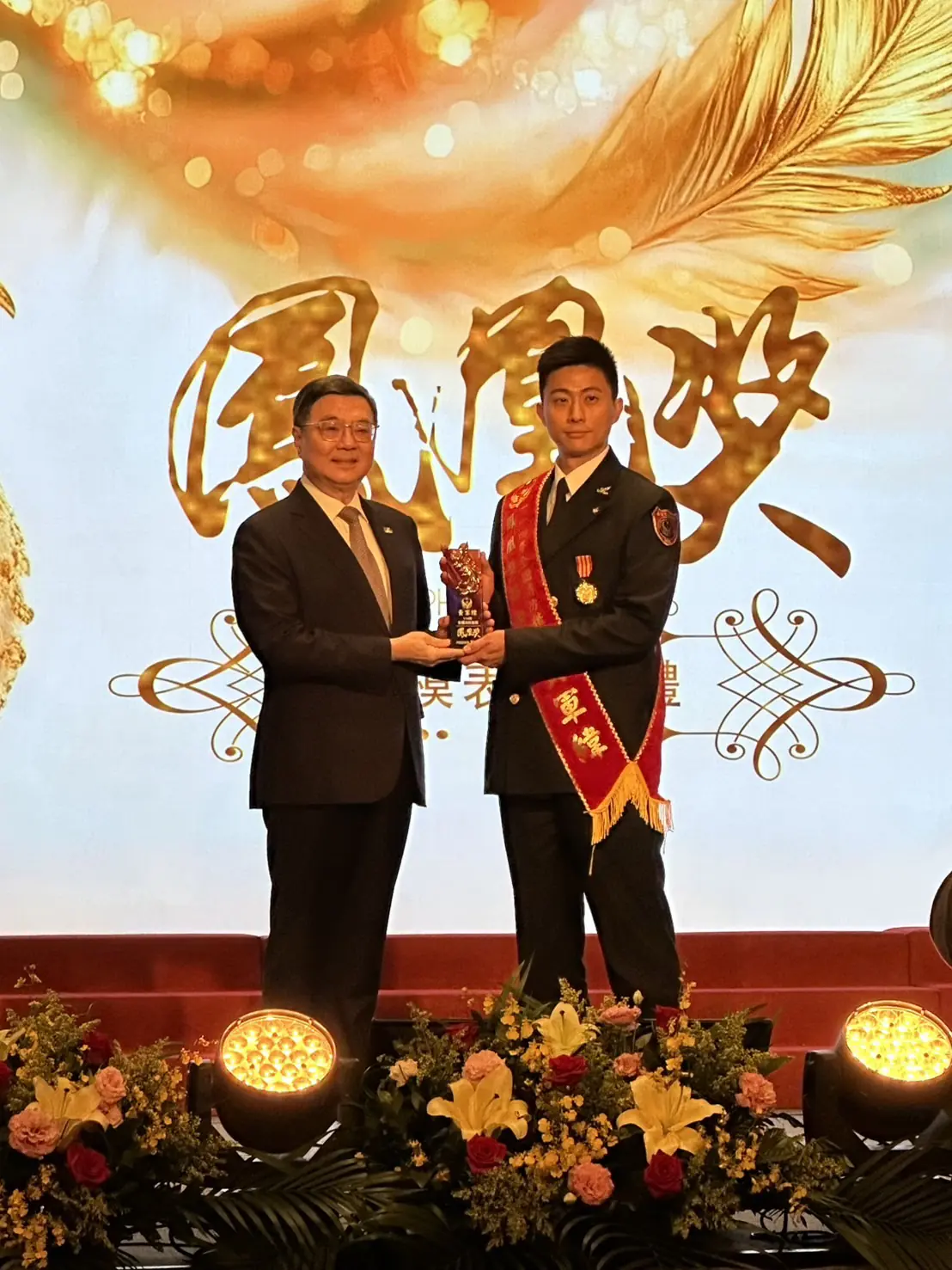 行政院卓榮泰院長親自頒發獎座,並表示消防人員是人民在危急時刻最堅強的依靠;同時以「祥樂豐足」與所有消防楷模共勉,期勉持續精進專業、團結合作,共同守護國人安全,並代表國家感謝所有獲獎人員的付出。