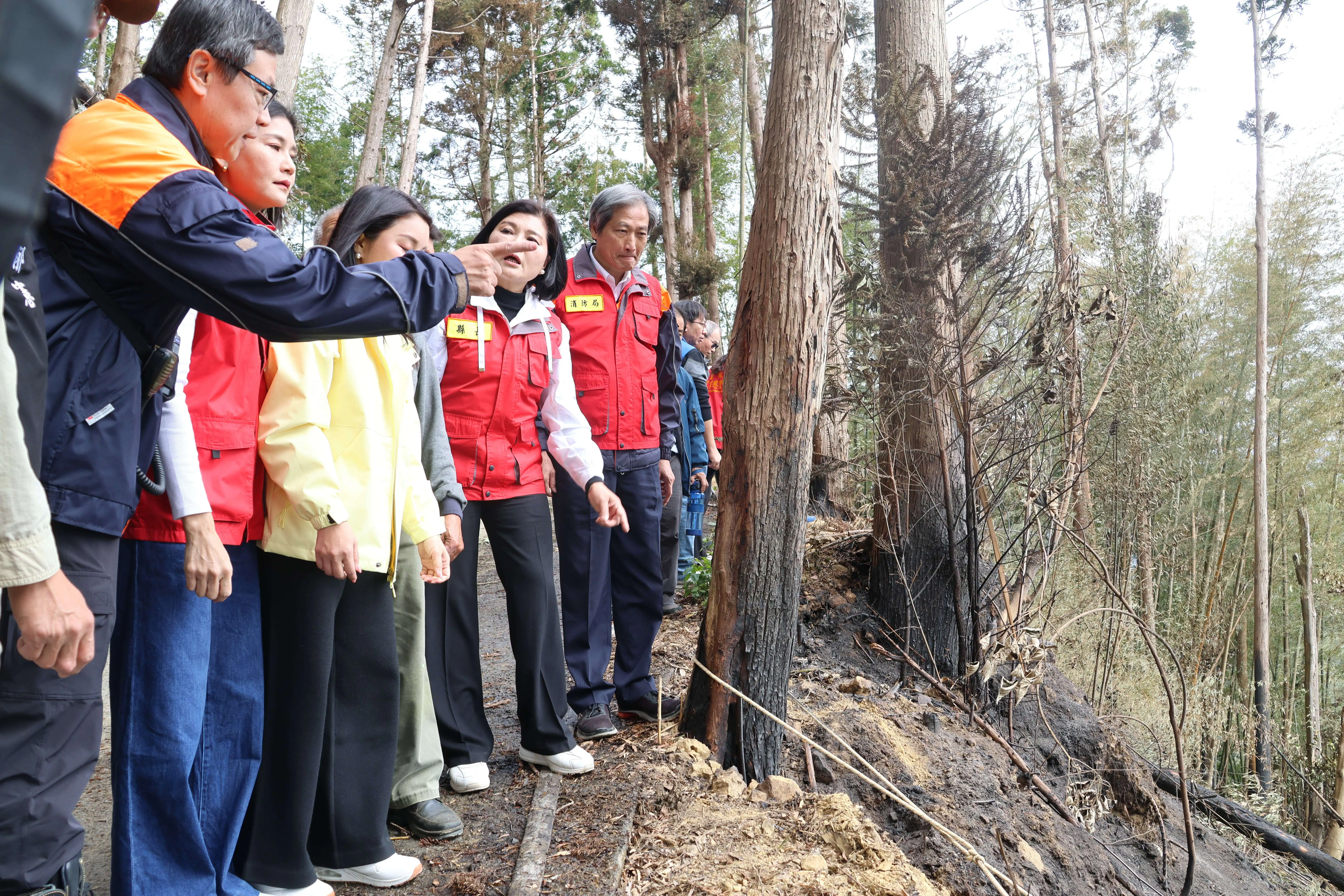 張麗善縣長率隊勘查草嶺山林火警 指示建置蓄水系統及消防管線 強化救災量能縣長張麗善今天一早率縣府團隊:副縣長陳璧君、消防局長林文山、交通工務局長汪令堯、農業處長魏勝德、城鄉處長林長造及準文觀處長謝明璇等,及立委張嘉郡陪同下,上山勘災,並與消防、義消及村民共同商討改進策略。