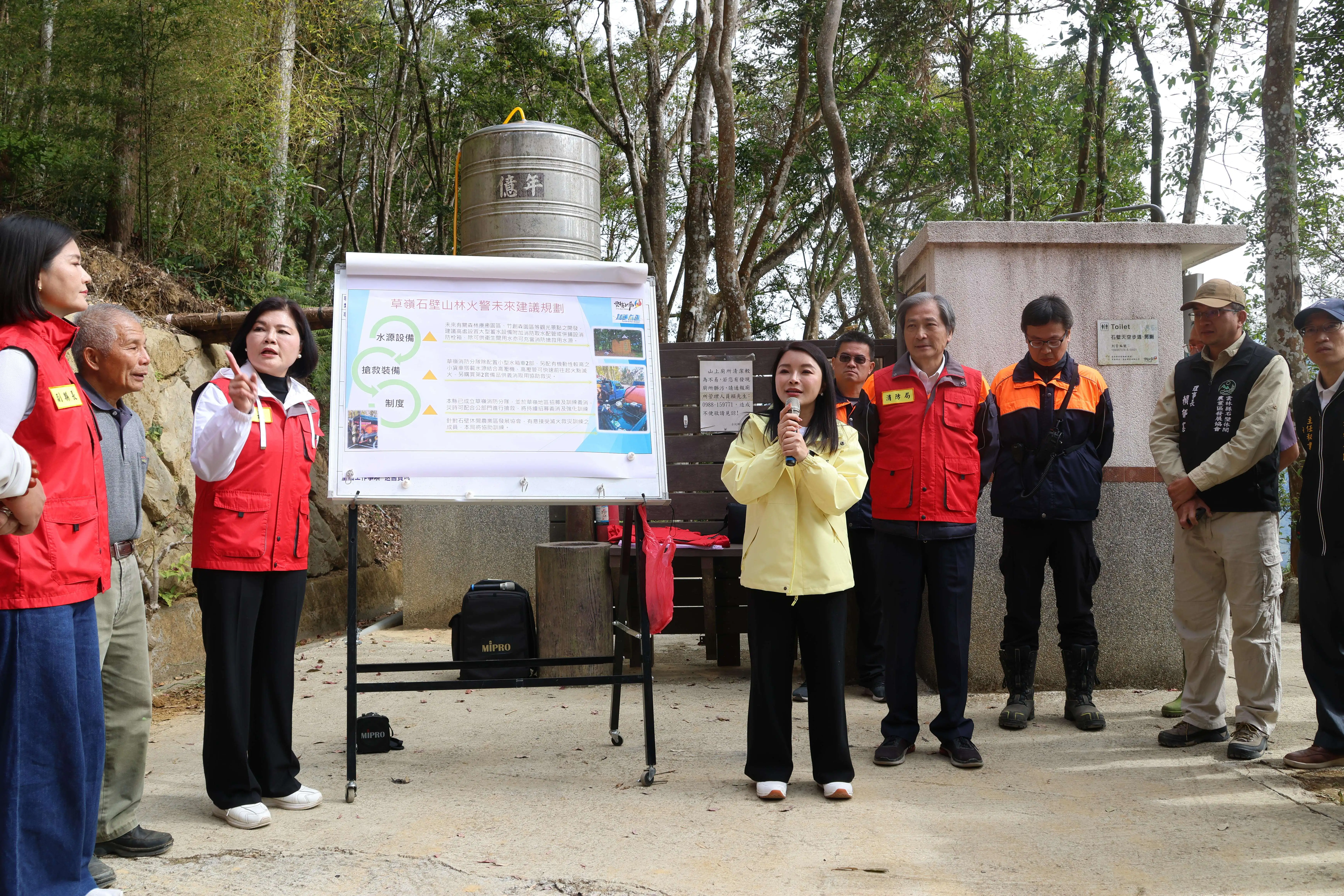 林局長指出,未來地方消防水源的建置,會配合縣府整體來進行規劃,未來有關觀光景點之開發,也建議高處設置大型蓄水設備附加消防取水配管或併鋪設消防栓箱,除可供衛生間用水亦可充當消防搶救用水源。草嶺消防分隊再加強採購小型車輛,以到達一般消防車輛不能到達的地方;另草嶺消防分隊也持續招募及訓練義消,災時可加入搶救,針對石壁地區,已組1支義消小隊,未來對於地方民眾、石壁休閒農業區發展協會成員有意接受滅火救災訓練者,本局將協助訓練。大家攜手共同守護家園。
