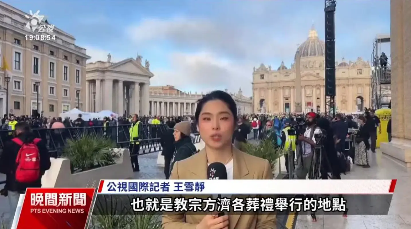114年4月公視駐義大利國際記者王雪靜赴梵蒂岡採訪陳建仁以特使身分出席教宗喪禮及新教宗就職大典 照片提供:公共電視