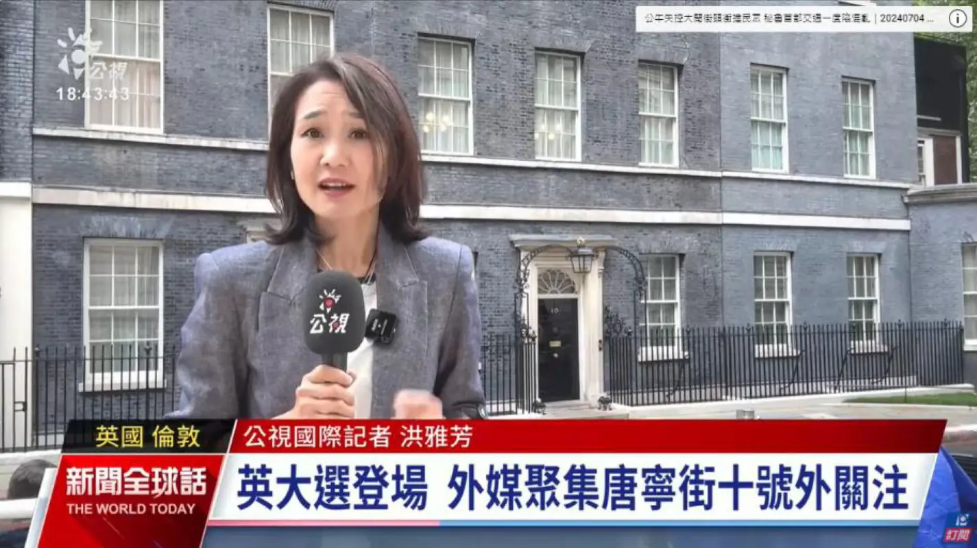 113年7月公視駐英國國際記者洪雅芳進行英國大選連線報導 照片提供:公共電視
