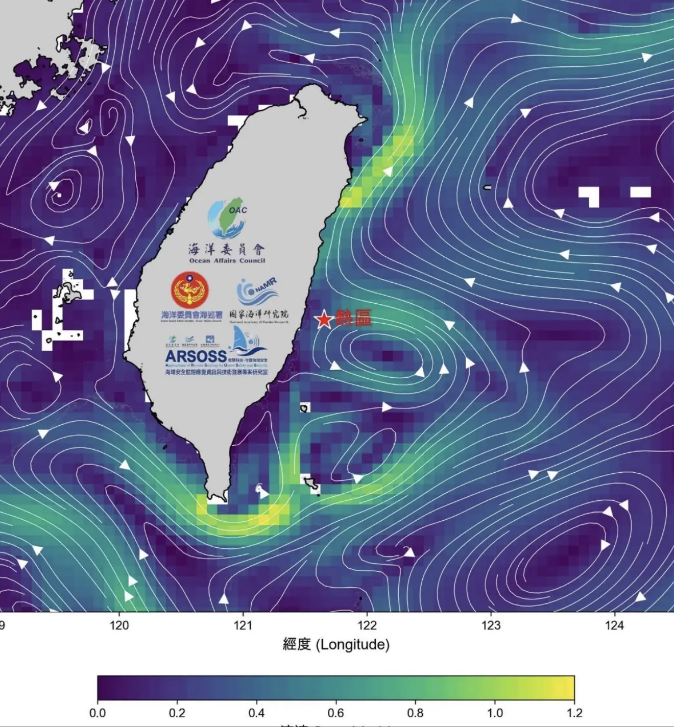 國海院說明,黑潮與陸地交界區的表層流場,同時受到多重因素影響,包括黑潮邊緣的強流速剪切與回流結構、渦旋活動(如島嶼尾流渦、中尺度渦流)、潮汐造成的短週期擺動,以及風場引發的表層漂移效應等。因此,在特定時間與特定海域內,觀測到局部向南流動或回轉流場,屬於合理且並不罕見的現象