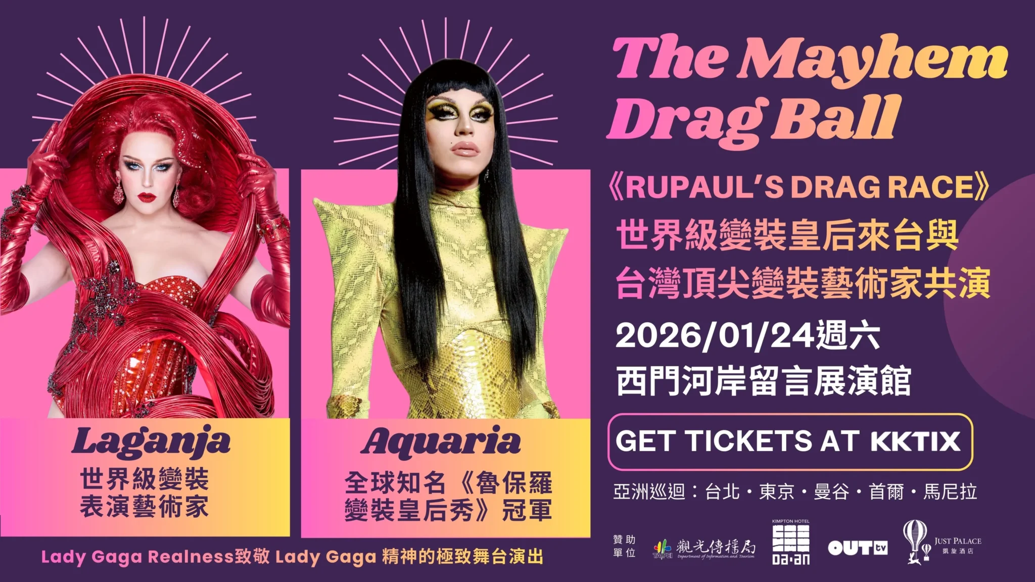 台北變裝藝術圈即將沸騰,「2026 You Better WERQ!」《致敬 Lady Gaga: The Mayhem Drag Ball》國際變裝藝術演出暨主題市集,將於1月24日晚間在台北西門河岸Live House盛大登場。這場活動推廣自我表達、多樣性及當代變裝藝術,靈感源自Lady Gaga克服霸凌的堅韌精神,用音樂與藝術療癒自己與粉絲,因而成為象徵全球LGBTQ+的過程。本次藝術節台北為亞洲巡演計畫第一站,隨後將在東京、曼谷、首爾、馬尼拉巡演。特色亮點包括RuPaul’s Drag Race(魯保羅變裝皇后秀節目)的國際皇后壓軸、限量的Meet & Greet合影互動,以及臺北市政府觀光傳播局贊助支持,特別製作的西門町LGBTQ友善地圖推薦,標註各種時尚酒吧、餐廳、IG打卡熱點等經典地標,幫助遊客輕鬆探索台北的多元文化面貌,感受真實彩虹活力。