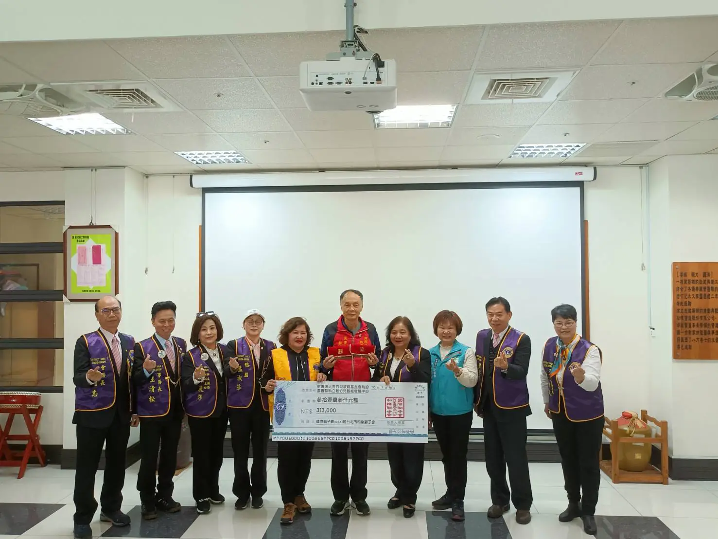 和樂獅子會寒冬送暖,集結獅友力量將滿滿關懷送給身心障礙團體,國際獅子會300A1區台北市「和樂獅子會」總監孟淑芬、分區主席陳金蔘及會長張幼鳳等人今16日蒞臨「若竹兒教育基金會」捐助社福金313,000元,嘉義縣社會局長張翠瑤致贈感謝狀,感謝獅子會的暖心善舉。