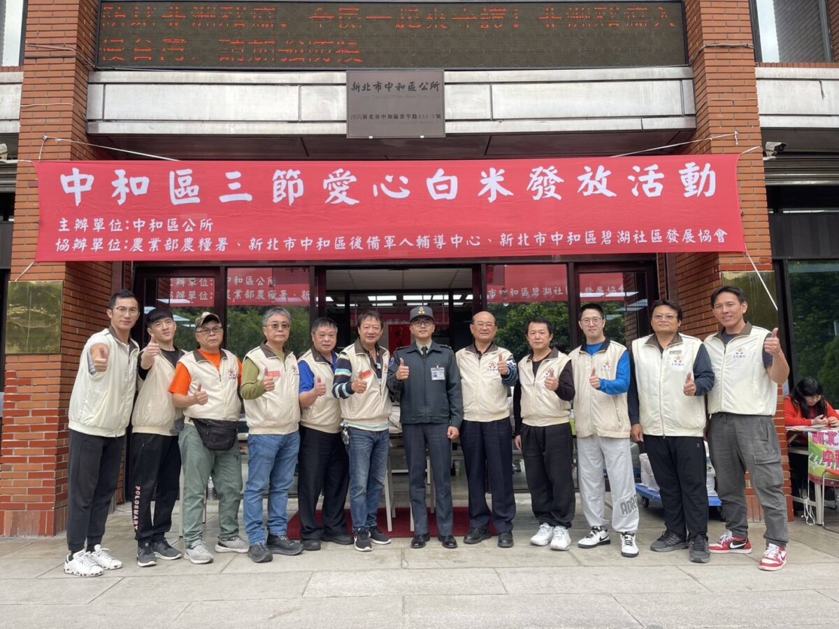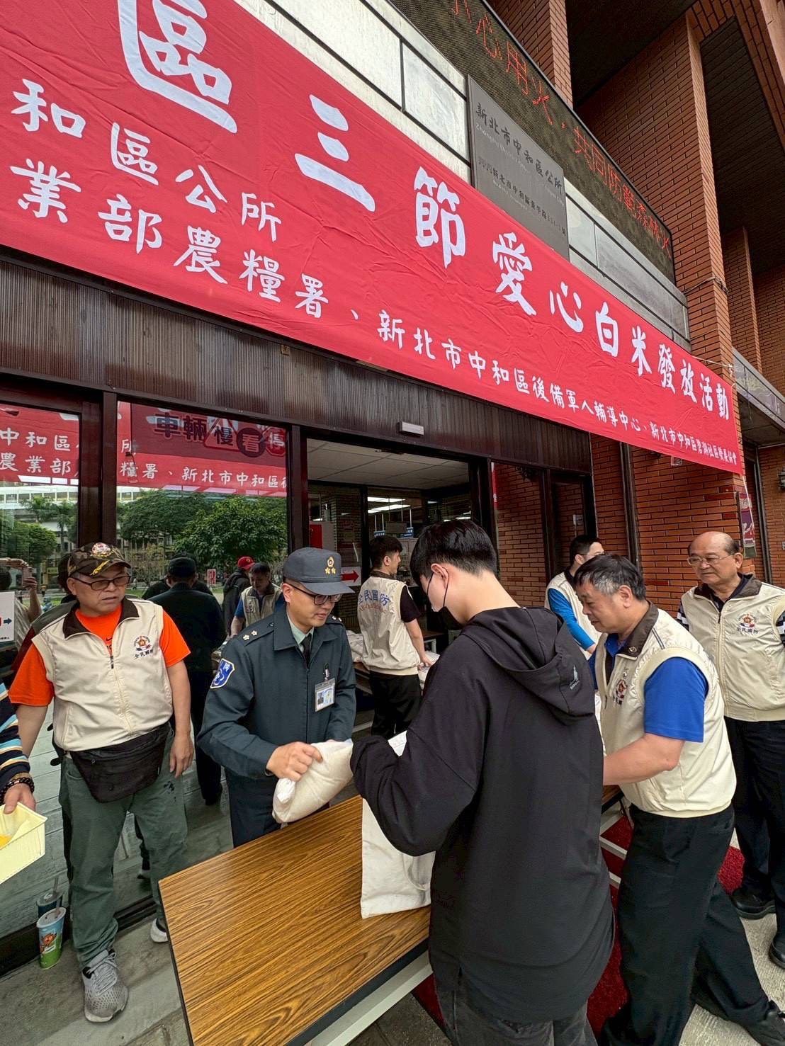 新北市中和區後備軍人輔導中心今(16)日攜手中和區公所,於春節前夕辦理「愛心白米送暖」活動,暖心發放250袋優質白米予轄內弱勢家庭,將軍民攜手的關懷力量化為實際行動,在寒冬中為需要的家庭送上溫暖與希望,讓愛心在社區中持續流動。